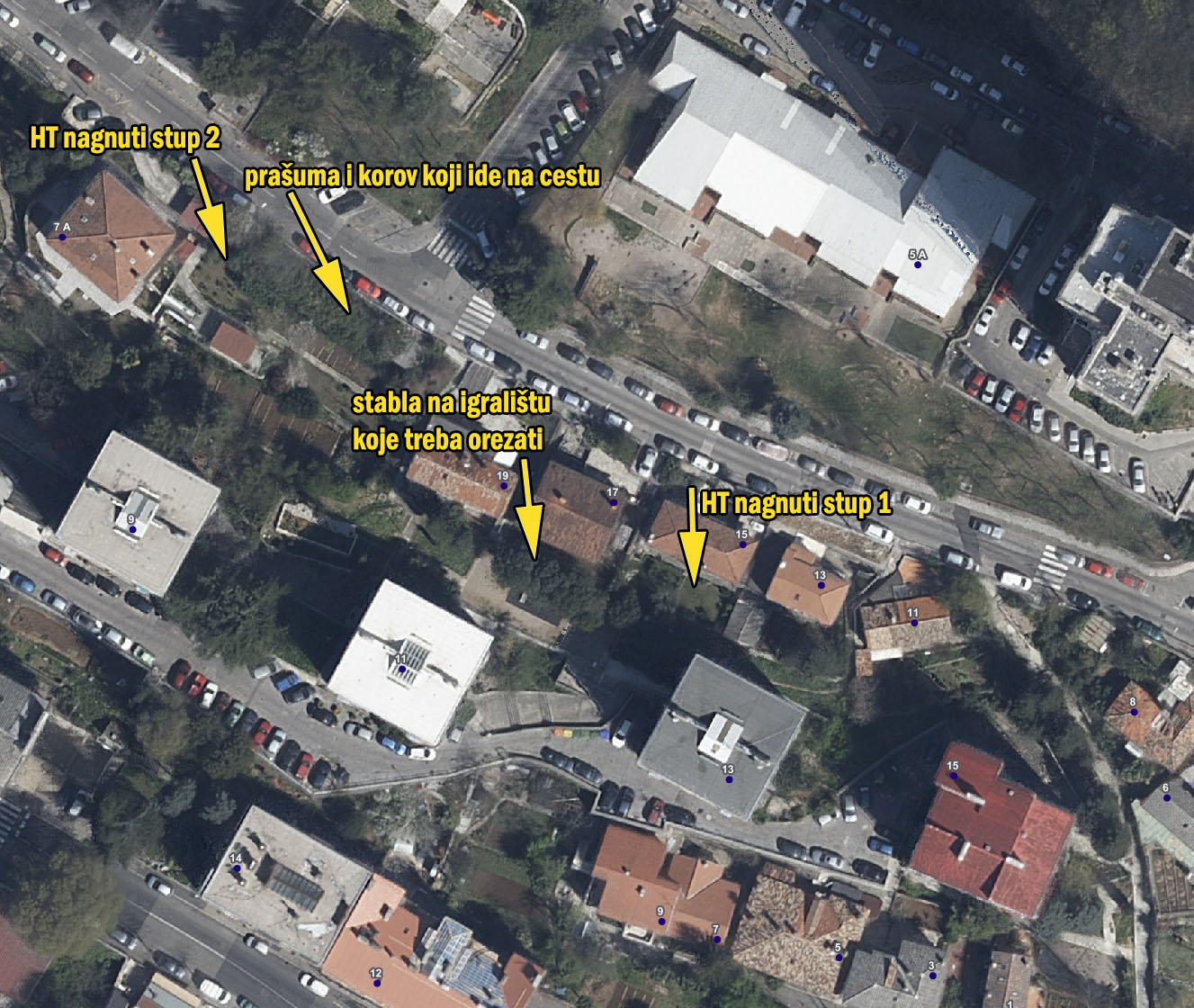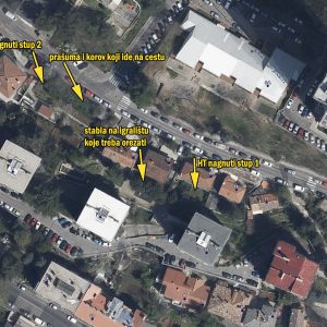 Na katastarskoj čestici 1848/2 se nalazi drugi viseći telefonski stup (no on ne predstavlja opasnost) koji vodi do toplane Energa. No, iz te čestice, prema fotografijama raste prašuma i korov od nekoliko metara koji prelazi i na pločnik.