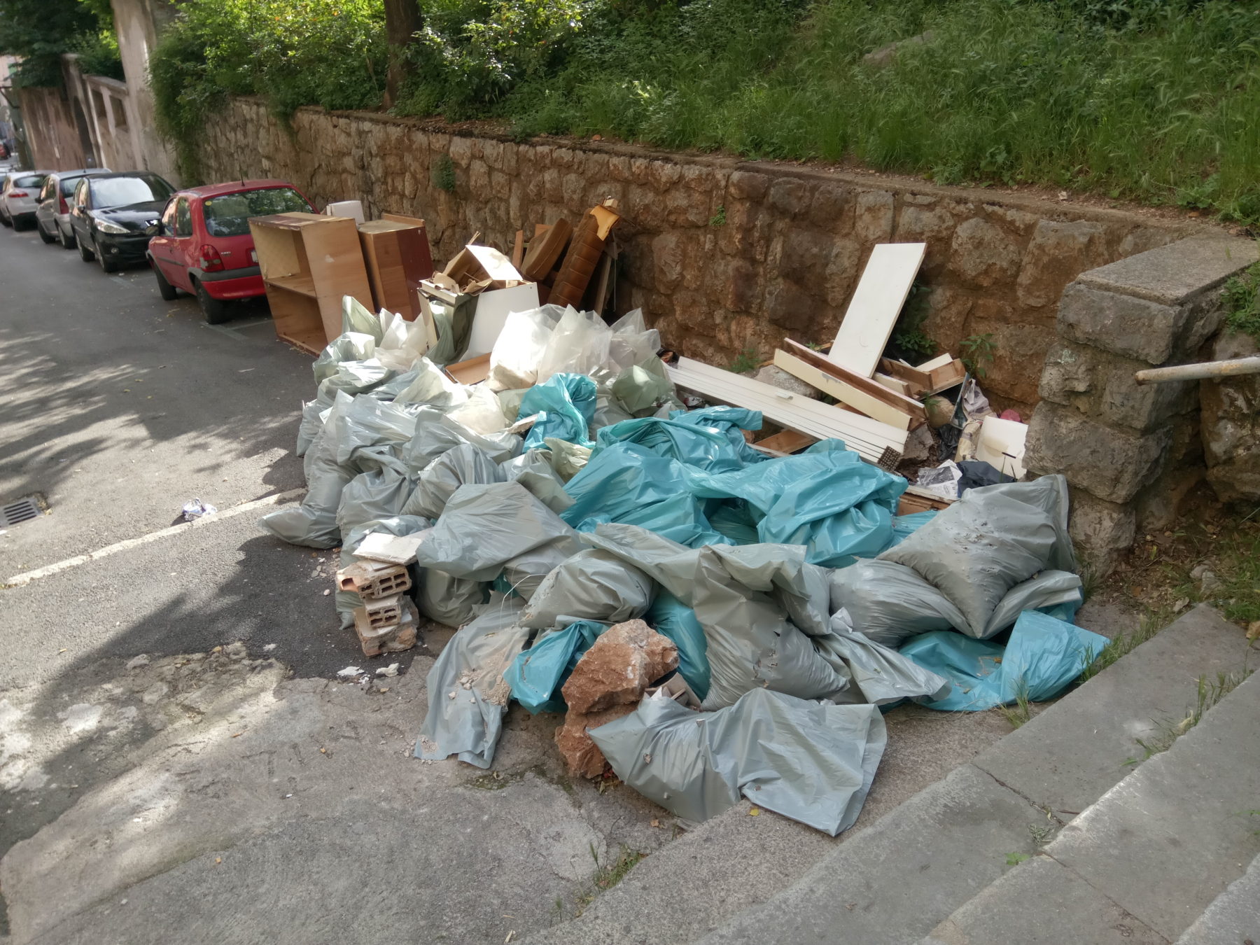 Svakodnevno prolazim ulicom, odnosno stepenicama u ulici Uspon Irene Tomee te sam primijetila da u posljednjih 10-ak dana na vrhu uzbrdice stoji nagomilano smeće, šuta, namještaj, ma nema čega nema a sve je smeće…. Osim što je ružno za vidjeti, nagomilano smeće zauzima jedno parkirno mjesto. Zašto prometno redarstvo ne reagira? Gdje je komunalno redarstvo? Zašto se oglušuje?