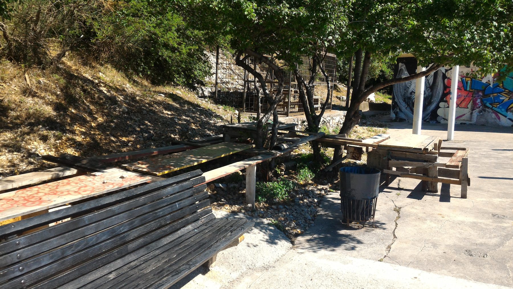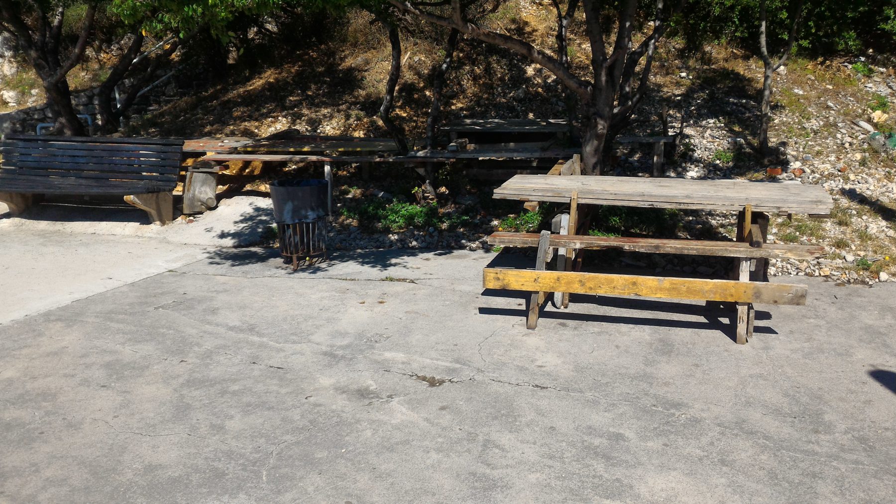 Prilikom uređenja plaže, purušeni su stolovi i klupice , na kojima su barbići igrali karte i šah.