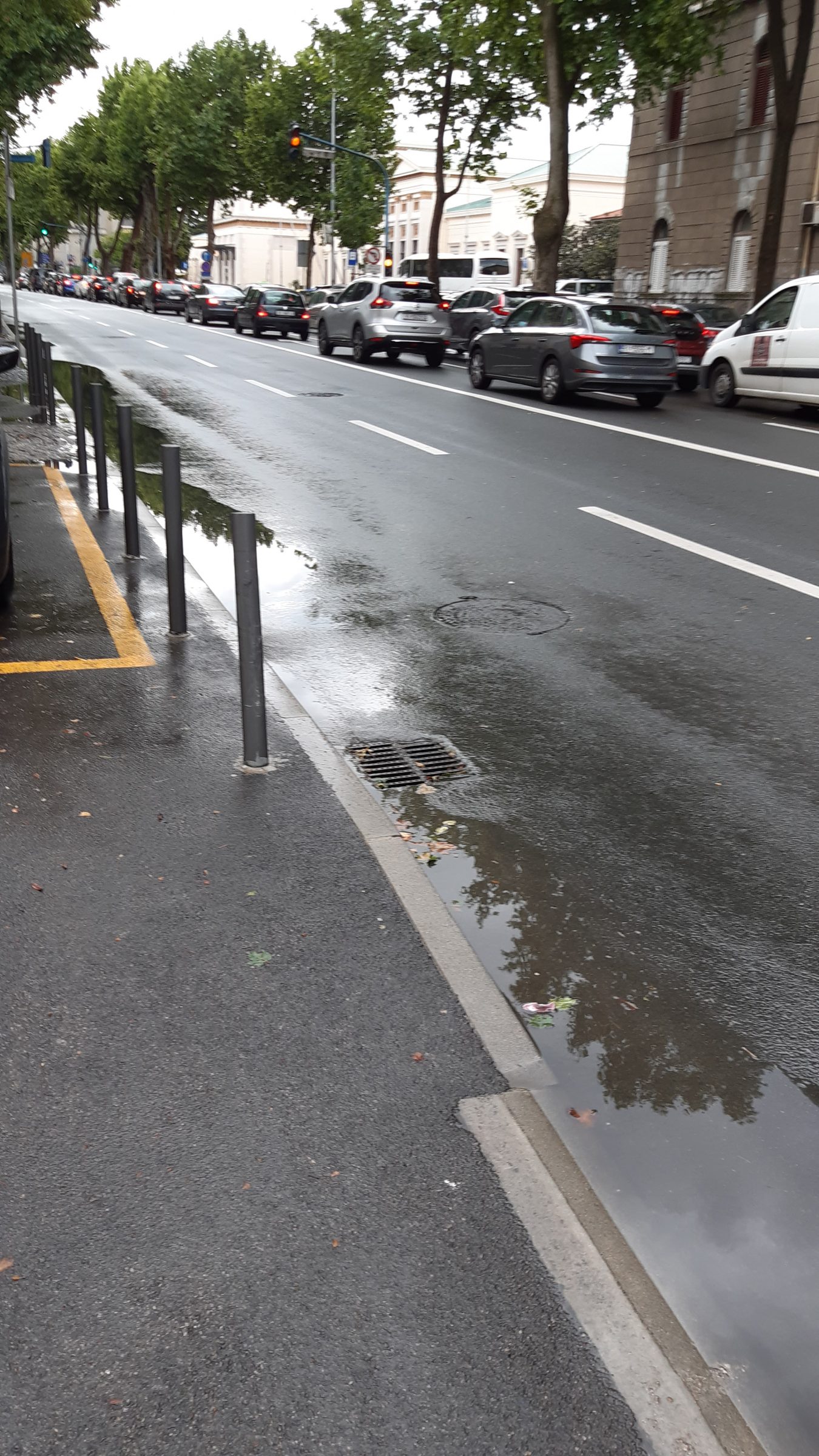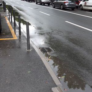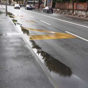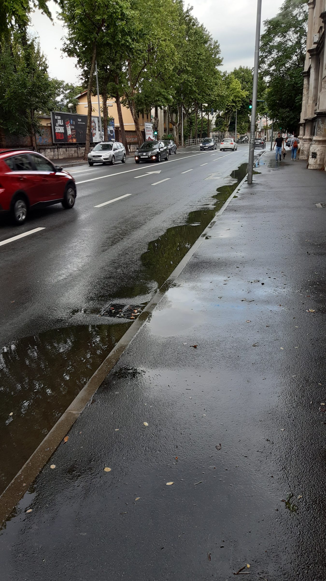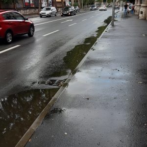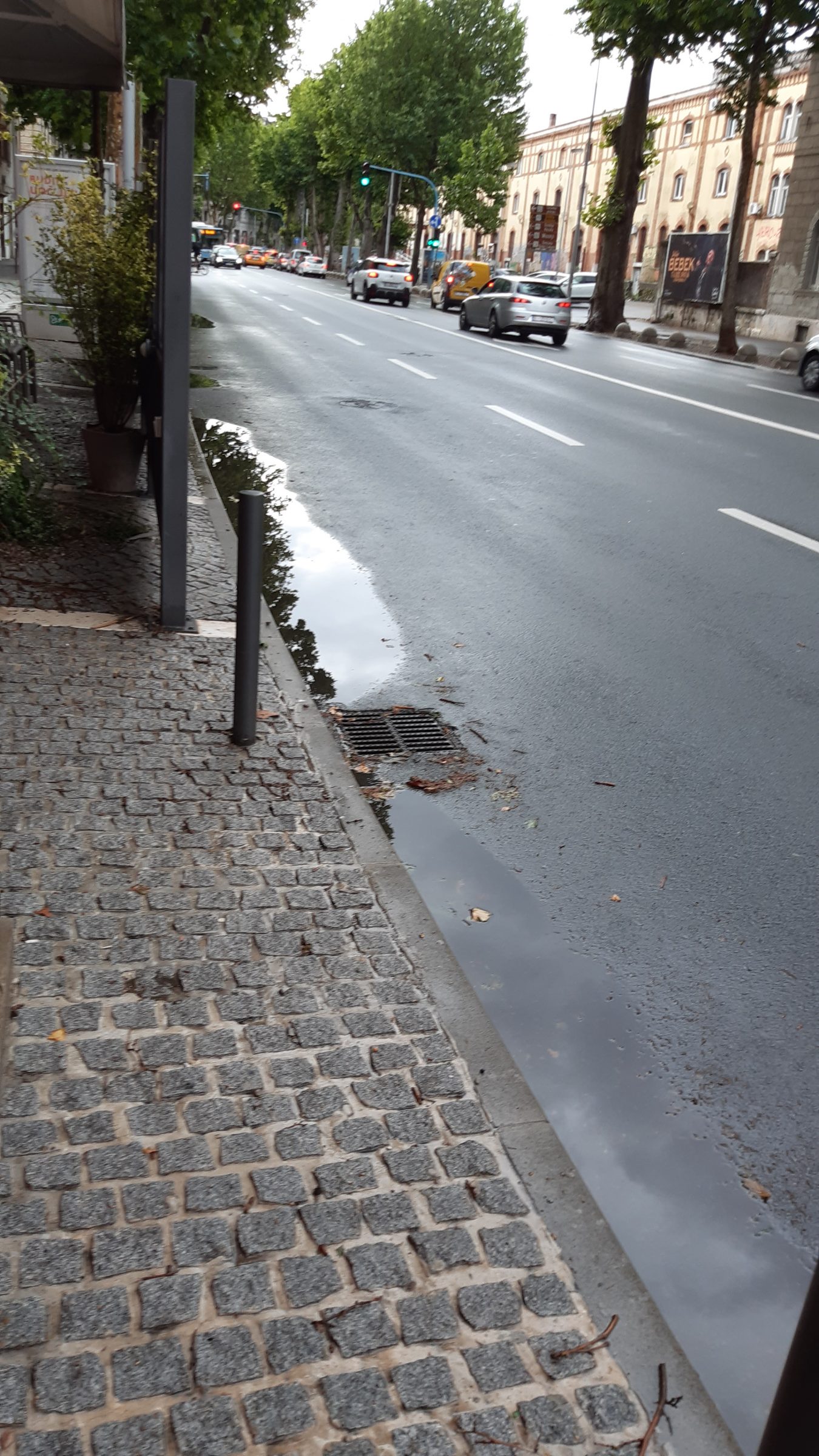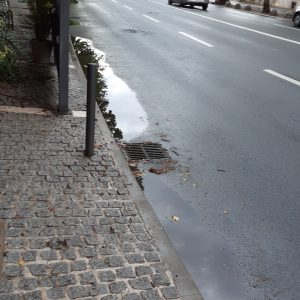 Moze se vidjeti da su skoro sve šahte za odvod izdignute i ne preuzimaju oborinsku vodu koja se u lokvama zadržava satima nakon što je kiša prestala padati.