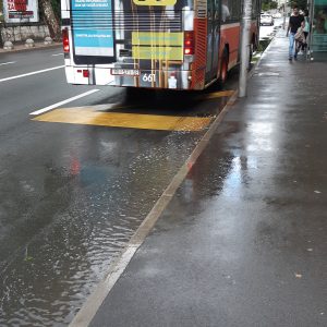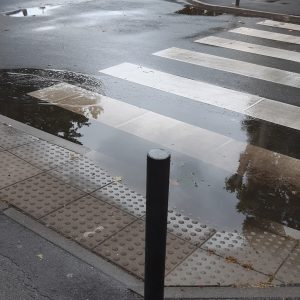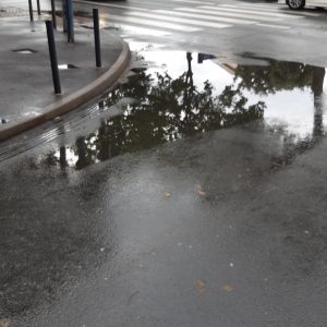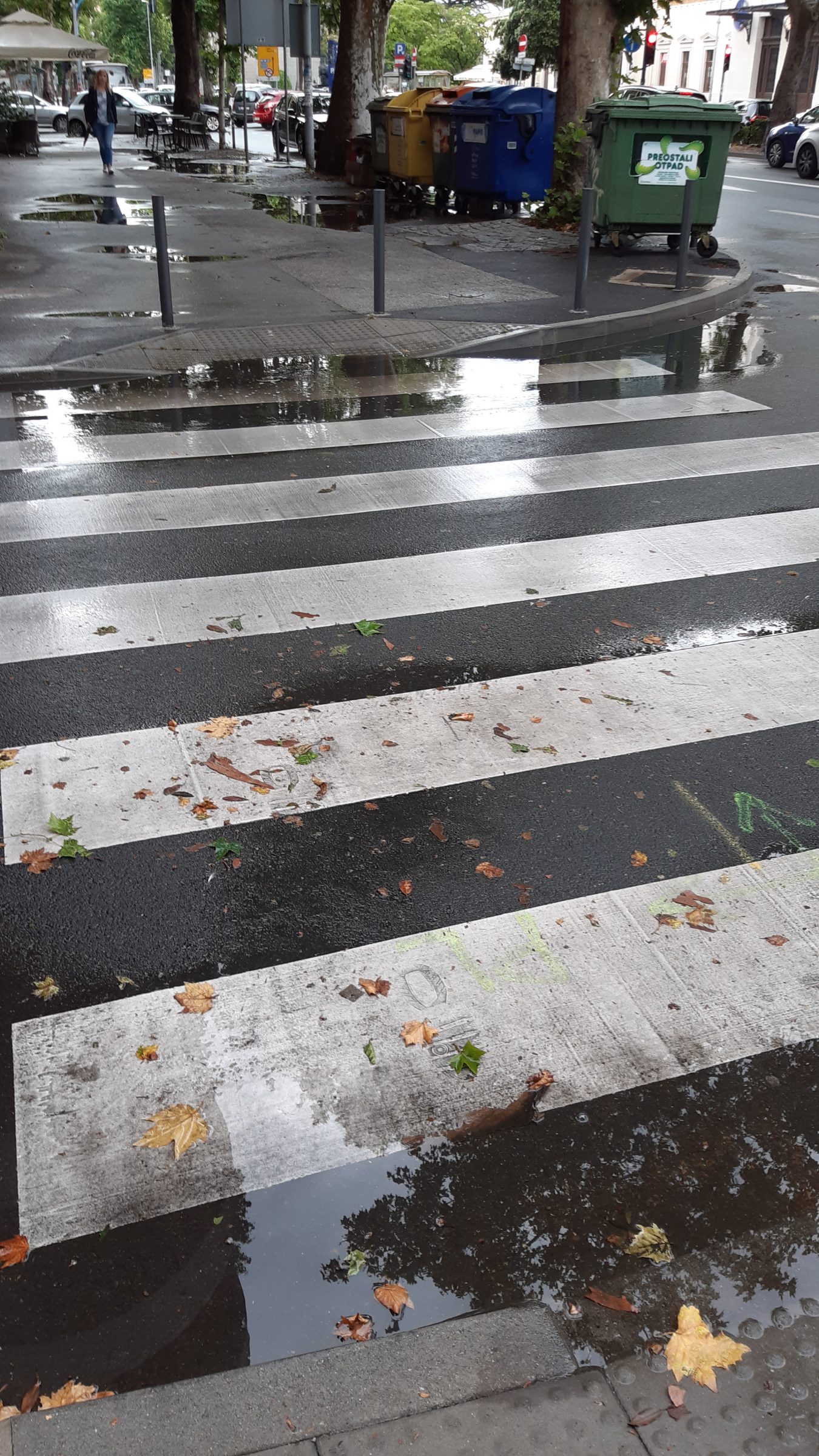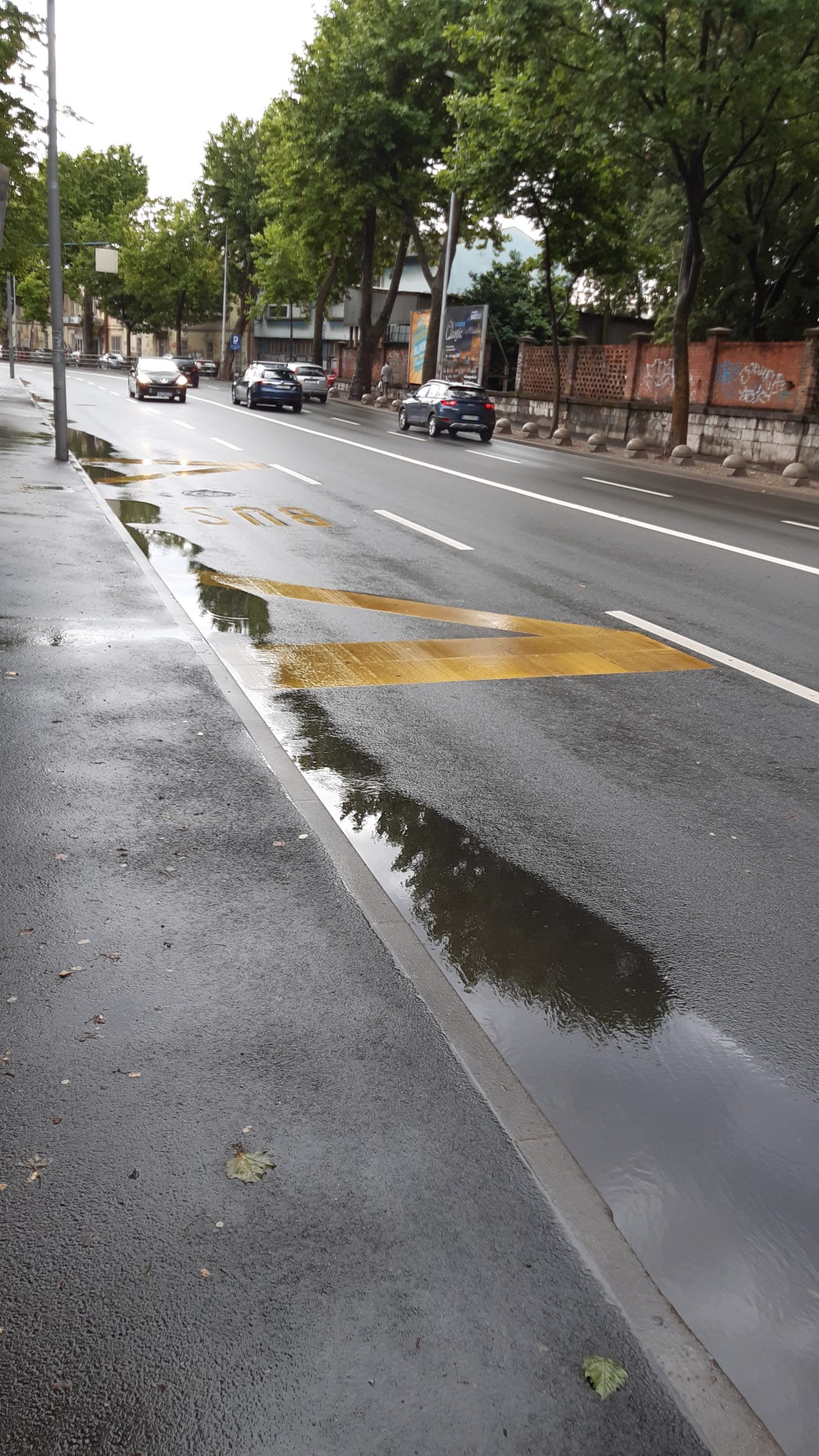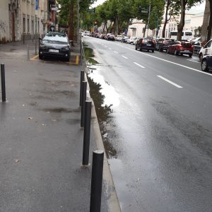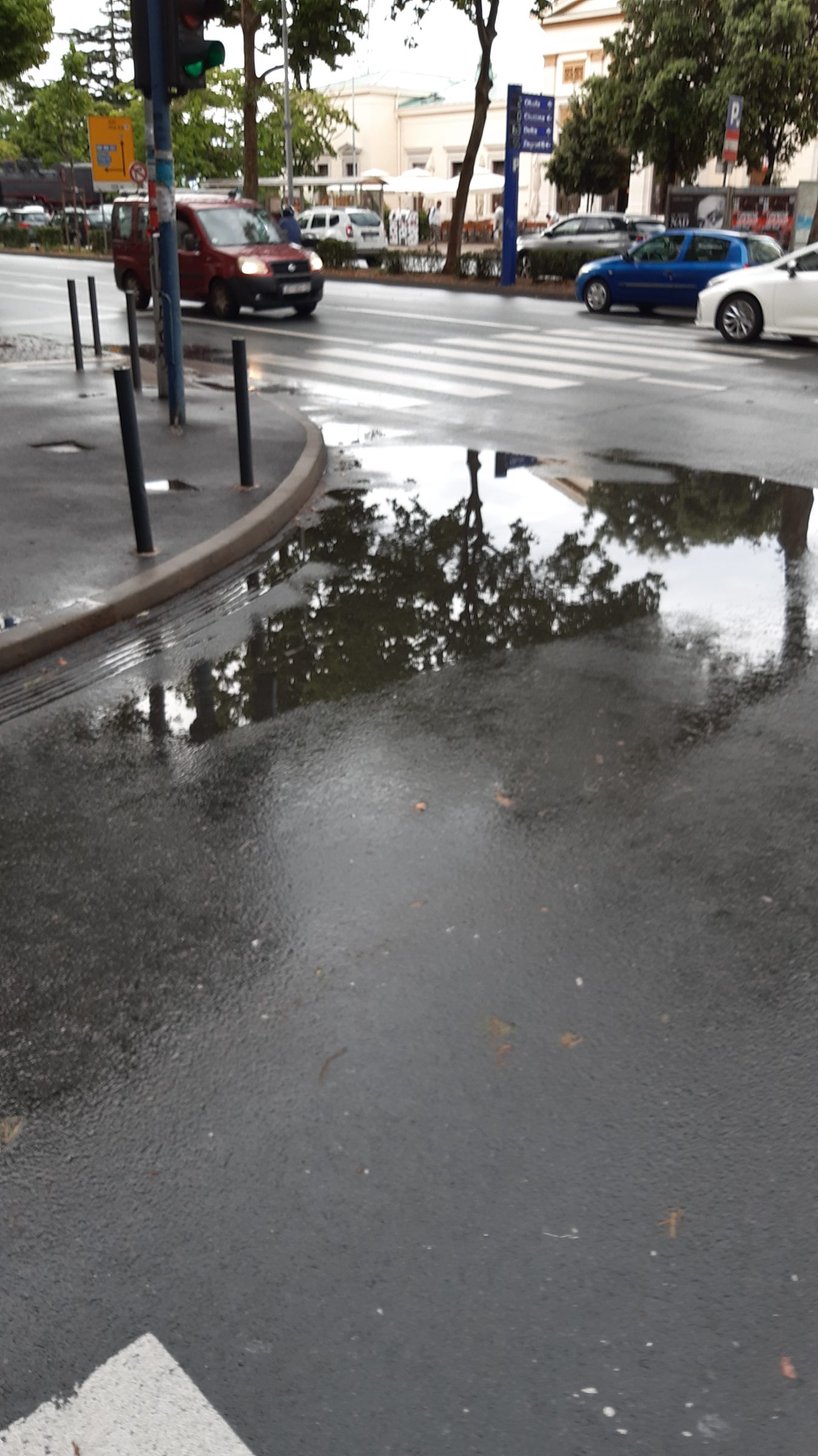 Moze se vidjeti da su skoro sve šahte za odvod izdignute i ne preuzimaju oborinsku vodu koja se u lokvama zadržava satima nakon što je kiša prestala padati.