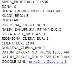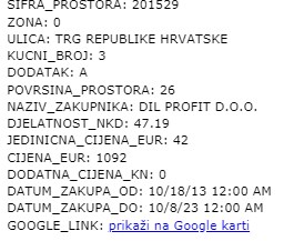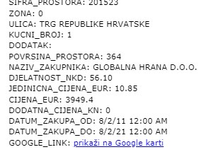 Tako unosna firma, koja prodaje skupu nezdravu hranu ima tako mali zakup dok recimo susjedni prostor, male trgovine “ANA” koja prodaje konce, trake, vunu, goblene plaća 24 Eura po m2 a jedva preživljavaju.