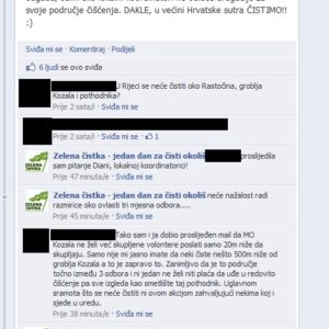 Međutim, danas popodne dolazi do preokreta i koordinator Kozala neće osigurati to čišćenje, neće osigurati baju, neku vreću koliko čujem i sve radi “foteljskih razloga” kada sam otvorio stranicu Čistke na društvenoj mreži jer je netko već pitao, znači ima zainteresiranih…