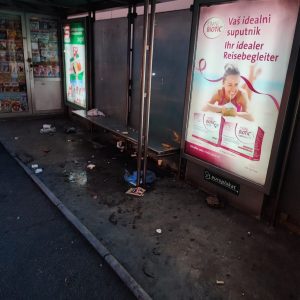 Na susjednoj autobusnoj čekaonici kod Kauflanda, lampe svijetle, ali izgleda da oni stavljaju papir preko papira i ne skidaju stare reklame pa sada samo troše struju a svijetlo uopće ne izlazi van koliko slojeva papira je u njoj.