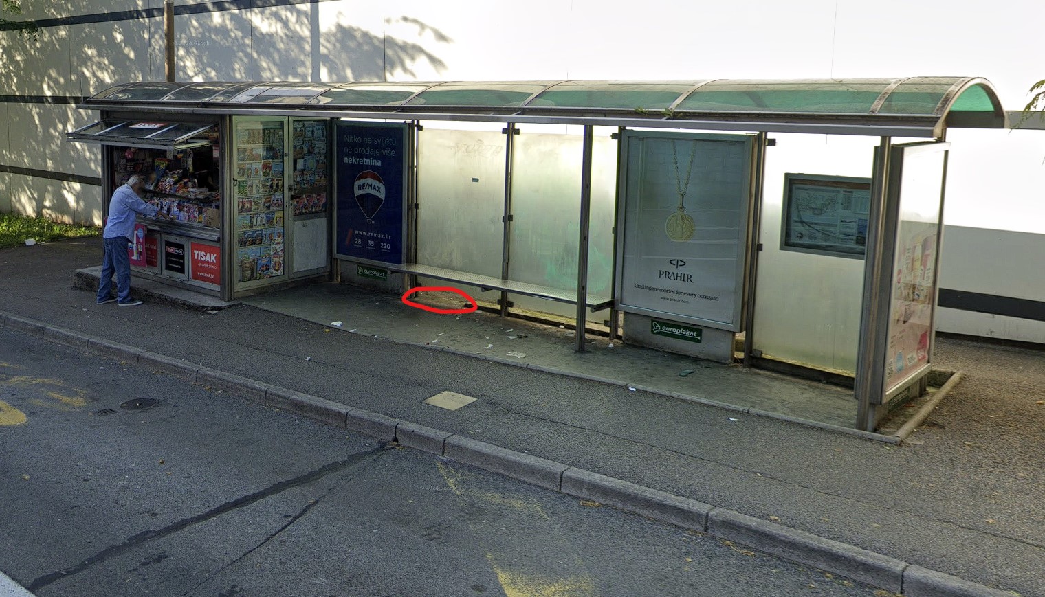 Također ako je moguće sa donje strane autobusne čekaonice staviti mali rubnjak, jer sva voda sa stražnje strane ulazi unutra (označeno crveno)