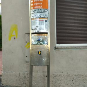 zahvaljujemo Vam na dojavi, iako su djelatnici nadležnog, Odjela gradske uprave za komunalni sustav već upoznati s devastacijom ovog spremnika i nosača.