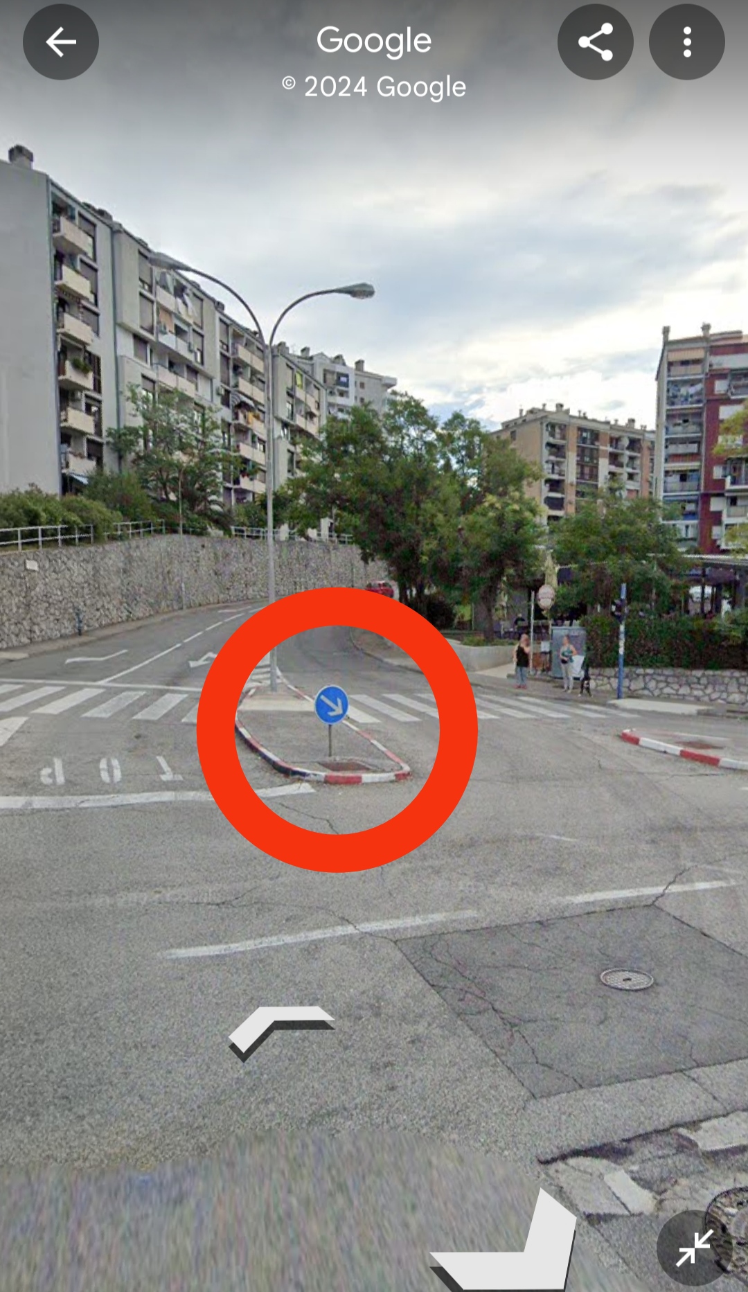 Prije nekoliko tjedana na križanju Nove ceste te Vidovićeve ceste (desetak metara ispred Caffe bara “Alibi”) bila je prometna nesreća te je pritom odvaljen prometni znak za obvezno obilaženje [otoka] s desne strane. Radi se o prometnom znaku koji je zaokružen na priloženoj snimci zaslona; znaku B59. Na snimci zaslona je također vidljivo i o kojoj se lokaciji radi.