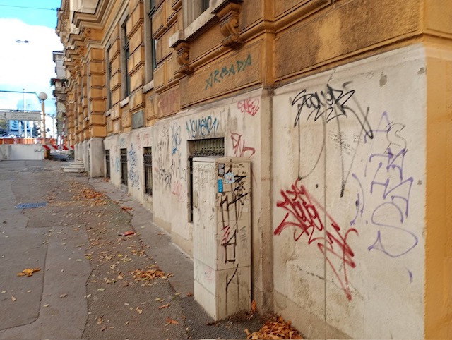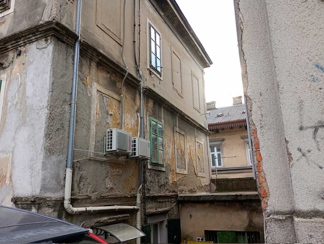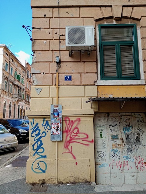 Rijeka je u prošlosti bila važna i bogata luka, industrija je cvjetala a u nasljestvo smo dobili mnogobrojne predivne stare zgrade, koje je gradila Austro-Ugarska Monarhija. Te zgrade su spomenici kulture, nešto čime bi se svaki grad trebao ponositi, ali one nažalost (većinom) potpuno propadaju i dosad nijedna vlast nije pokazala interes da se to promijeni, i djeluje kao da nikome, ni građanima Rijeke a ni gradskoj vlasti nije stalo do kulturne baštine ovoga grada. Skoro svaka stara zgrada u gradu je zapuštena, osim u strogom centru grada gdje je malo bolja situacija. Za primjer prilažem nekoliko fotografija koje sam slikala danas kada sam išla pješice iz grada i slikala potez od gradske tržnice prema Piramidi – jedan od možda najzapuštenijih dijelova grada iako ni približno jedini. Prizori, stvarno ne ugodni oku, stare, predivne, potpuno sive, zapuštene zgrade, išarane grafitima na svakom koraku, fasade koje se odranjaju… Dojam koji takva predgrađa ostavljaju su siromaštvo, bijeda, bezperspektivnost, i potpuna nebriga.