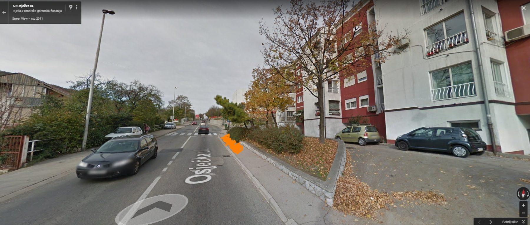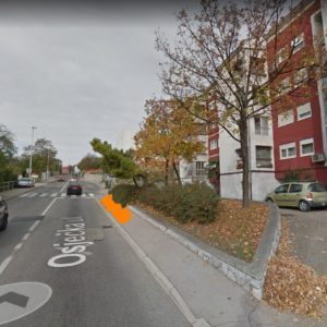 Kako su zavrseni radovi na skurinjama, neki kontejneri su premjesteni sa autobusne stanice gdje su prije stajali malo nize te time je pjesacki prijelaz skroz nepregledan kad se ide iz smjera grada za Tibljase/Drenovu, uopce se ne vidi iz auta da li tko stoji na pjesackom i ceka za preci cestu ili ne, na slici sam oznacio gdje sada stoje jer nisam bio u mogucnosti slikati