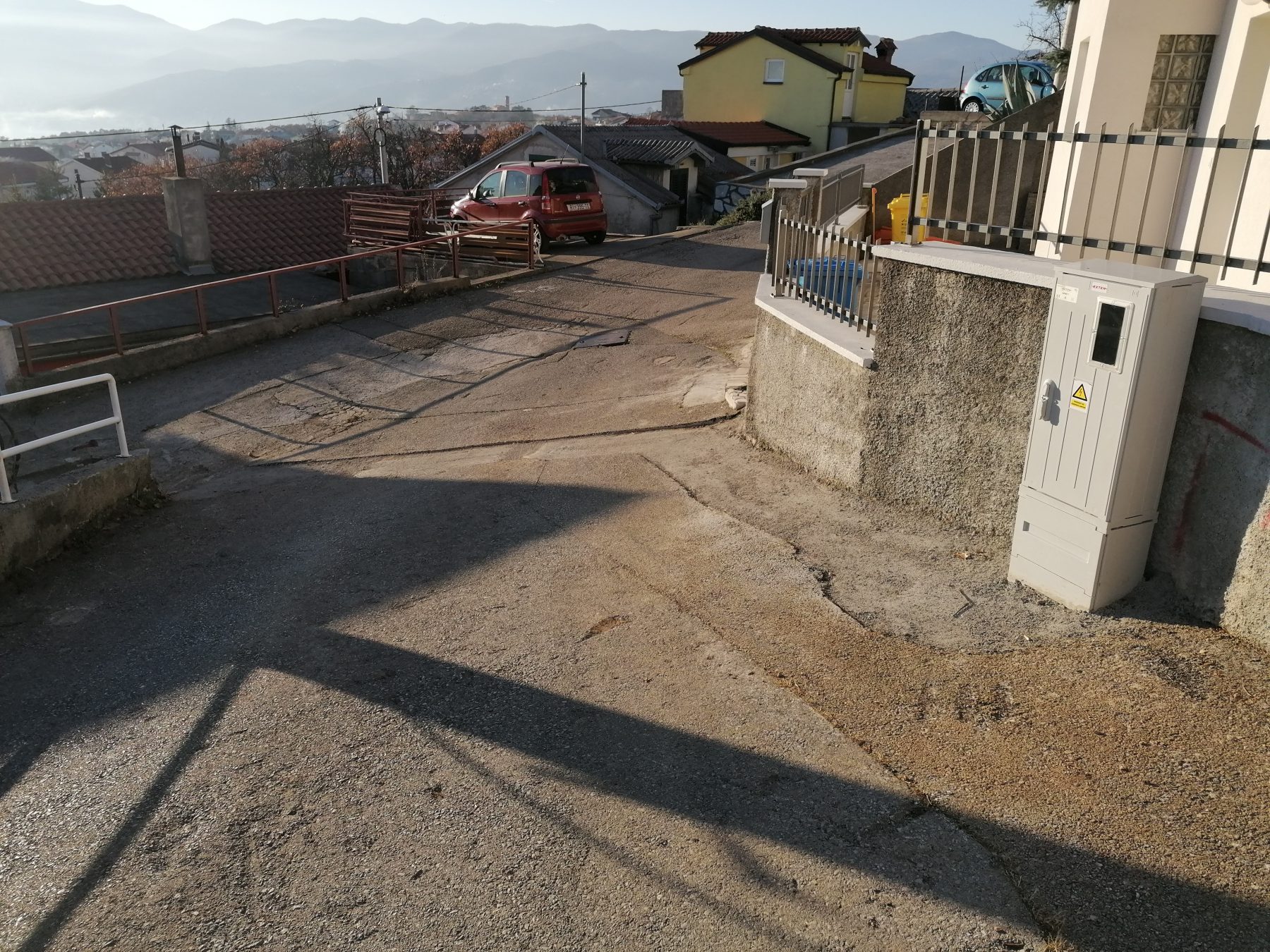 Kako se vidi sa slika, postavljen je ormarić za strujni priključak pa je na tom dijelu izvršen i prekop ceste, najvjerojatnije od strane HEP-a, zapunjeno je samo betonom bez asfalta i nije izravnato sa visinom ceste pa vozila po noći nalete na takav nesaniran dio.