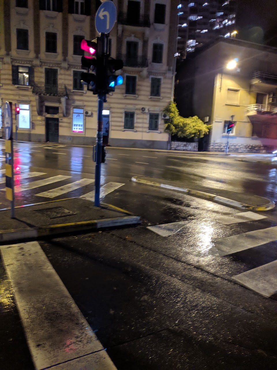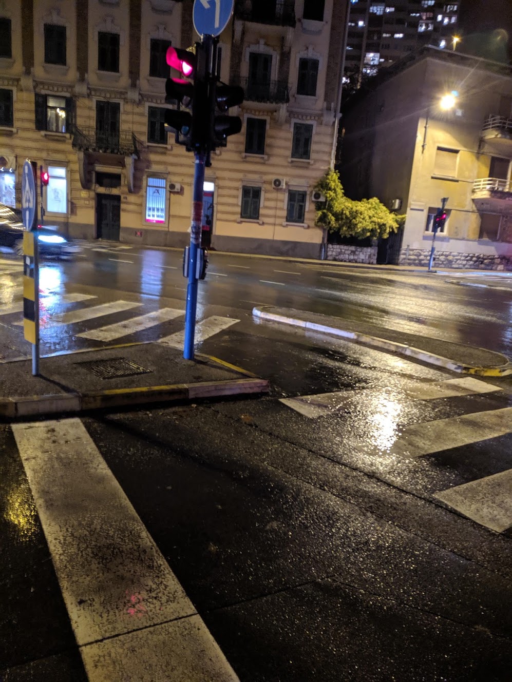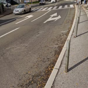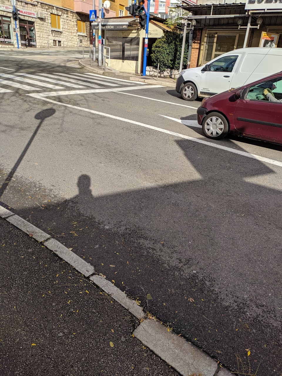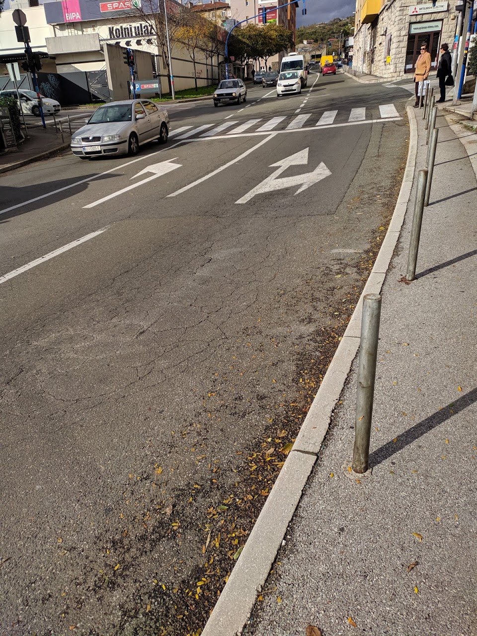 I ti senzori nemaju nikakav smisao, kao da su projektirani prije premještanja pješačkog, jer ovaj koji se nepotrebno uključuje je smješten na pješačkom a ne gdje vozila čekaju i asfalt je jako popucao i udubljen je, kada se to misli asfaltirati?