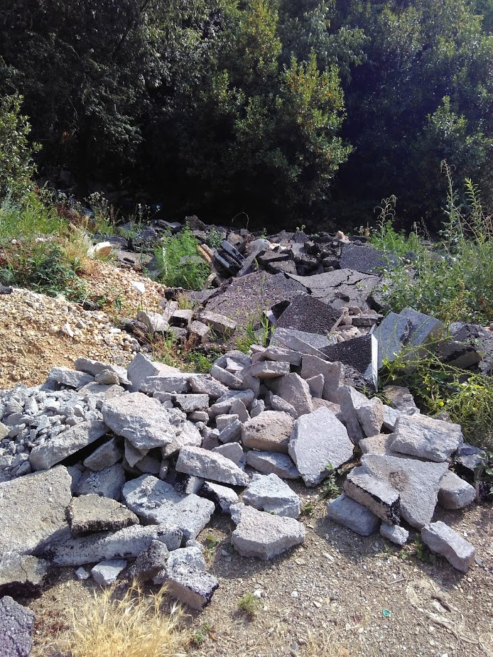 Kolnik na parkiralištu drovreda u Petra Kobeka je nedavno obnovljen, ali je izvođač radova sav stari asfalt jednostavno nelegalno odbacio na prvu livadu kraj bivšeg Instalatera te do dan danas nije uklonio (prostor od grada za budući vrtić).