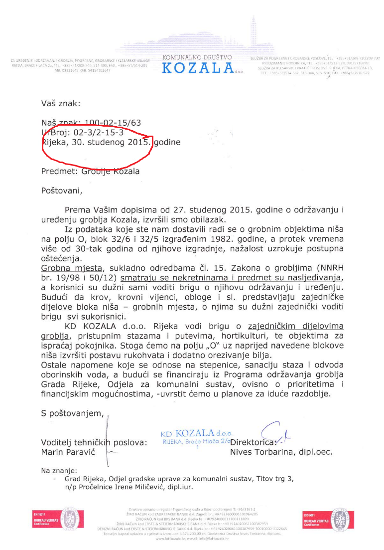 Preminula mi je bliska osoba i opet me iznenadila neljubaznost i neprofesionalnost KD Kozala, prvo morate doći na lokalitet Kozala i tamo kupiti grobno mjesto, to se plaća preko 10-ak tisuća kuna i isključivo gotovinom, ne može se plaćati karticama na rate, kao svugdje drugdje u hrvatskoj.