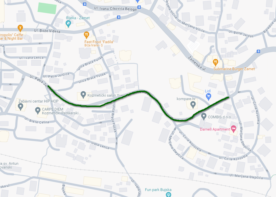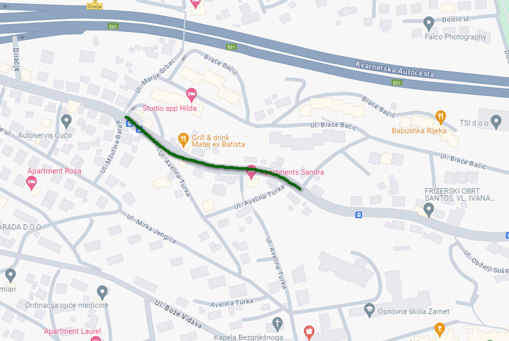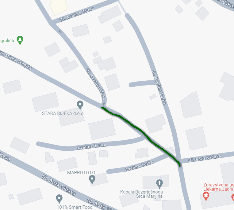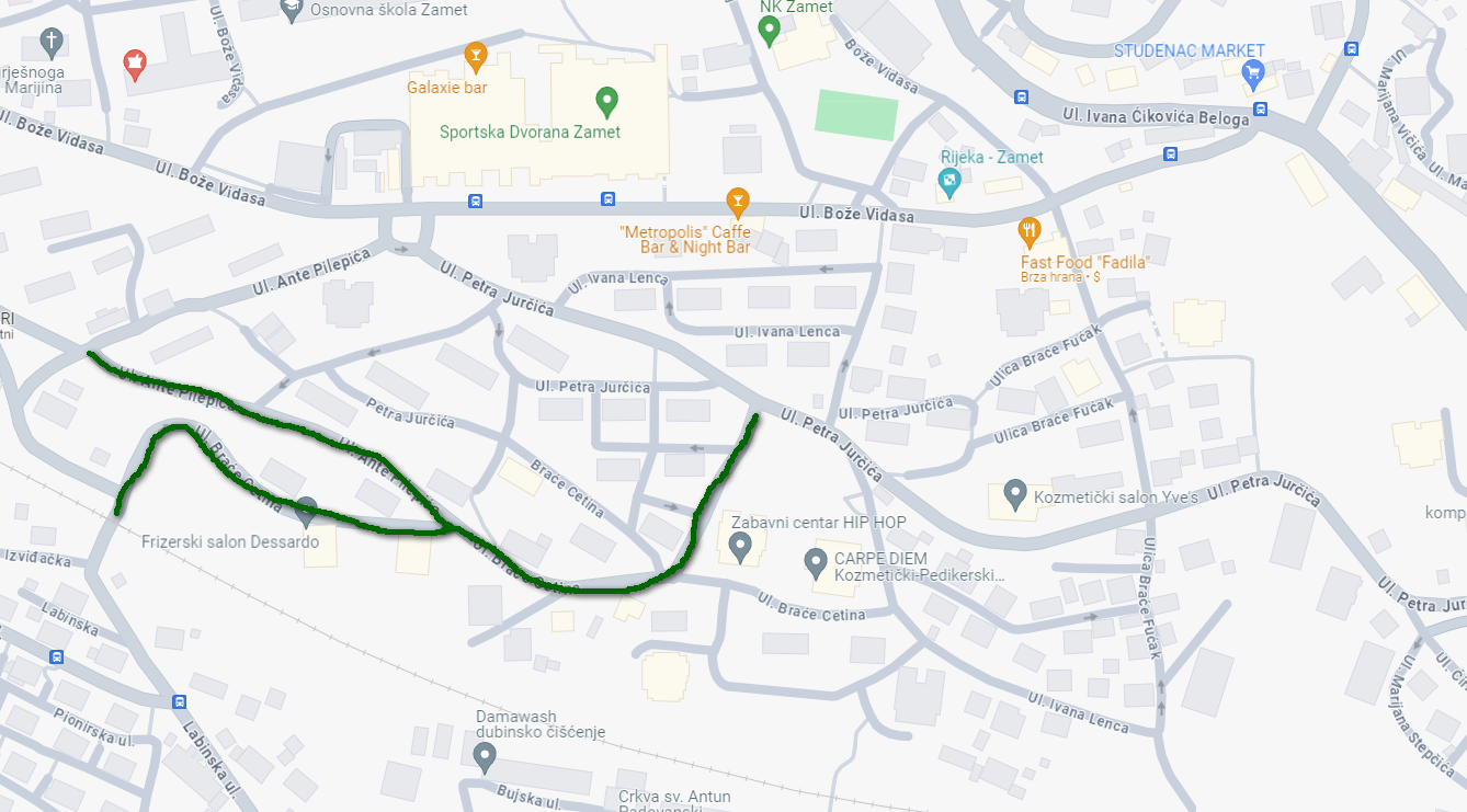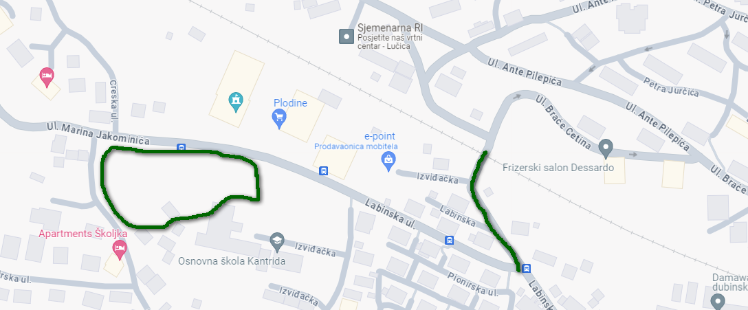 4. da malo pomognem vašim djelatnicima u prilogu zelenom crtom označeni segmenti problematičnih ulica i nedostupni nogostupi za pješake uzrokovani neodržavanjem raslinja uz prometnice, mada je ovo samo jedan mali dio i stvarno bi komunalni redari trebali obići svoja područja i dati naloge da se to sredi