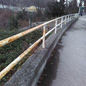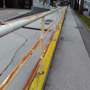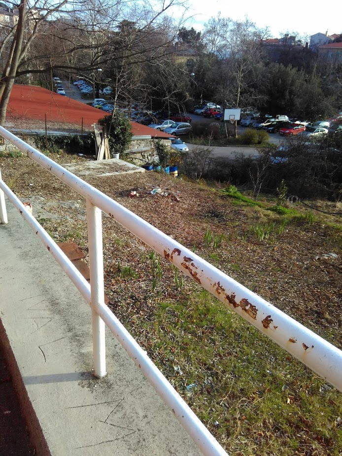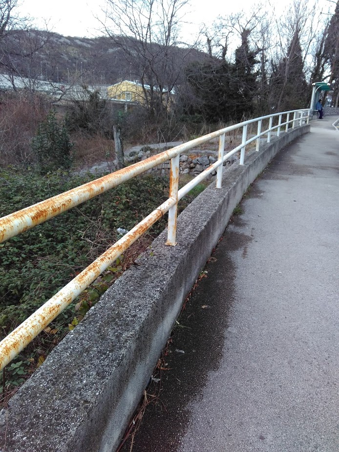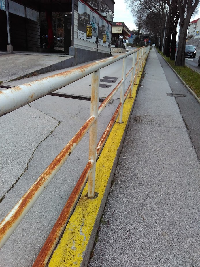 A u cijeloj Osječkoj, od br 69. sve do broja 24, (na prekide, nema svugdje) je ograda u očajnom stanju, od rekonstrukcije 2000. nije bojana, zahrđala, smeđa.