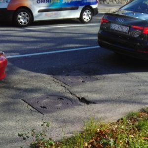 Vozila prelaze na drugu stranu ceste da zaobiđu te šahte.