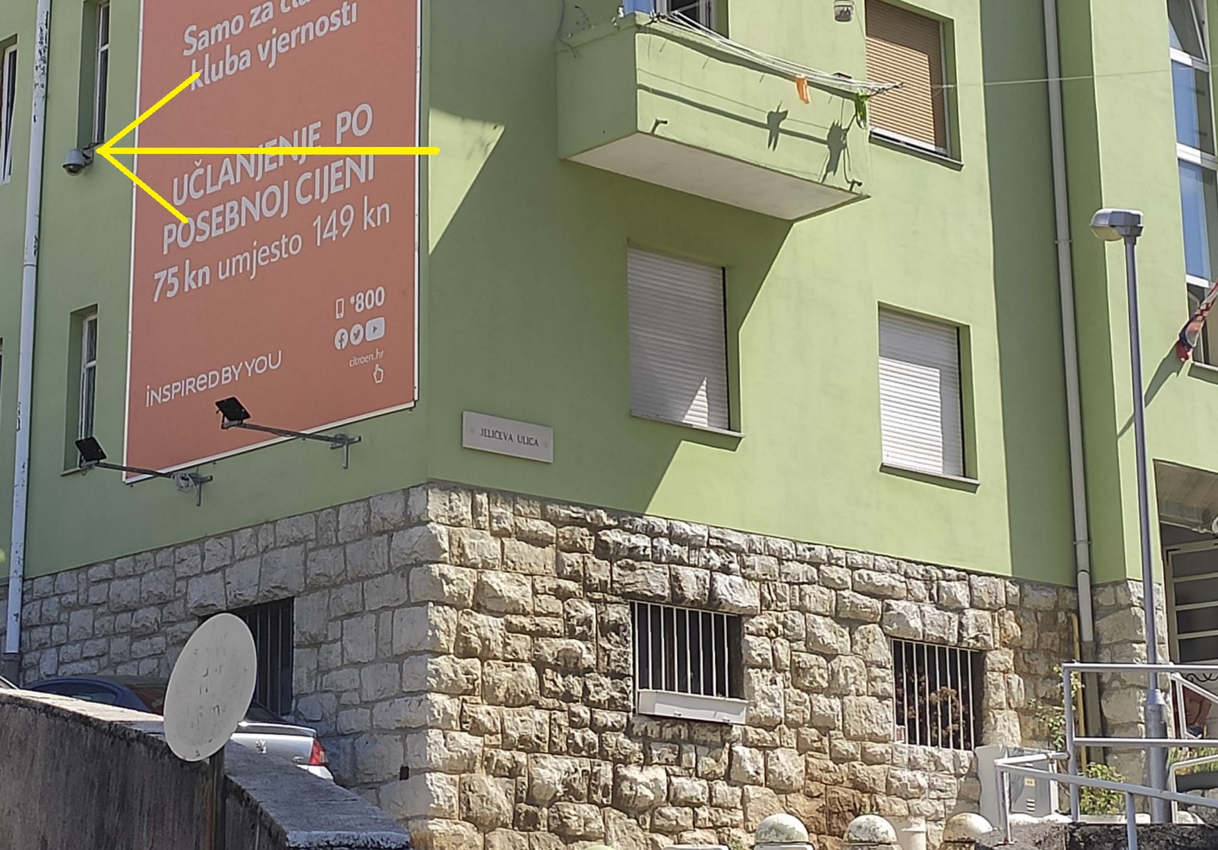 Također, u suprotnosti s GDPR-om netko je montirao dvije kamere koje snimaju na toj zgradi, jedna snima djecu na igralištu na istočnoj strani a druga snima samu Jelićevu ulicu na zapadnoj strani.