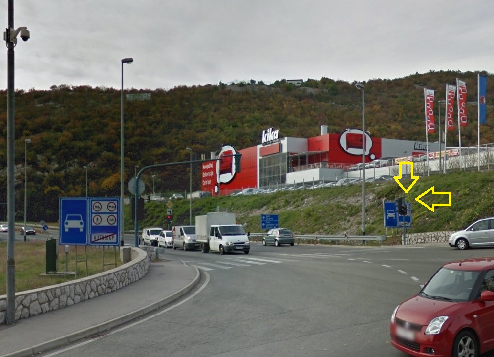 Ovo je jako opasno raskršće za pješake, vozila velikom brzinom se kreću iz smjera grada prema obilaznici kada se ugasi strelica jer misle da mogu proći a ne znaju da se pješacima prethodno upalilo zeleno (ne vide) te su već krenuli.