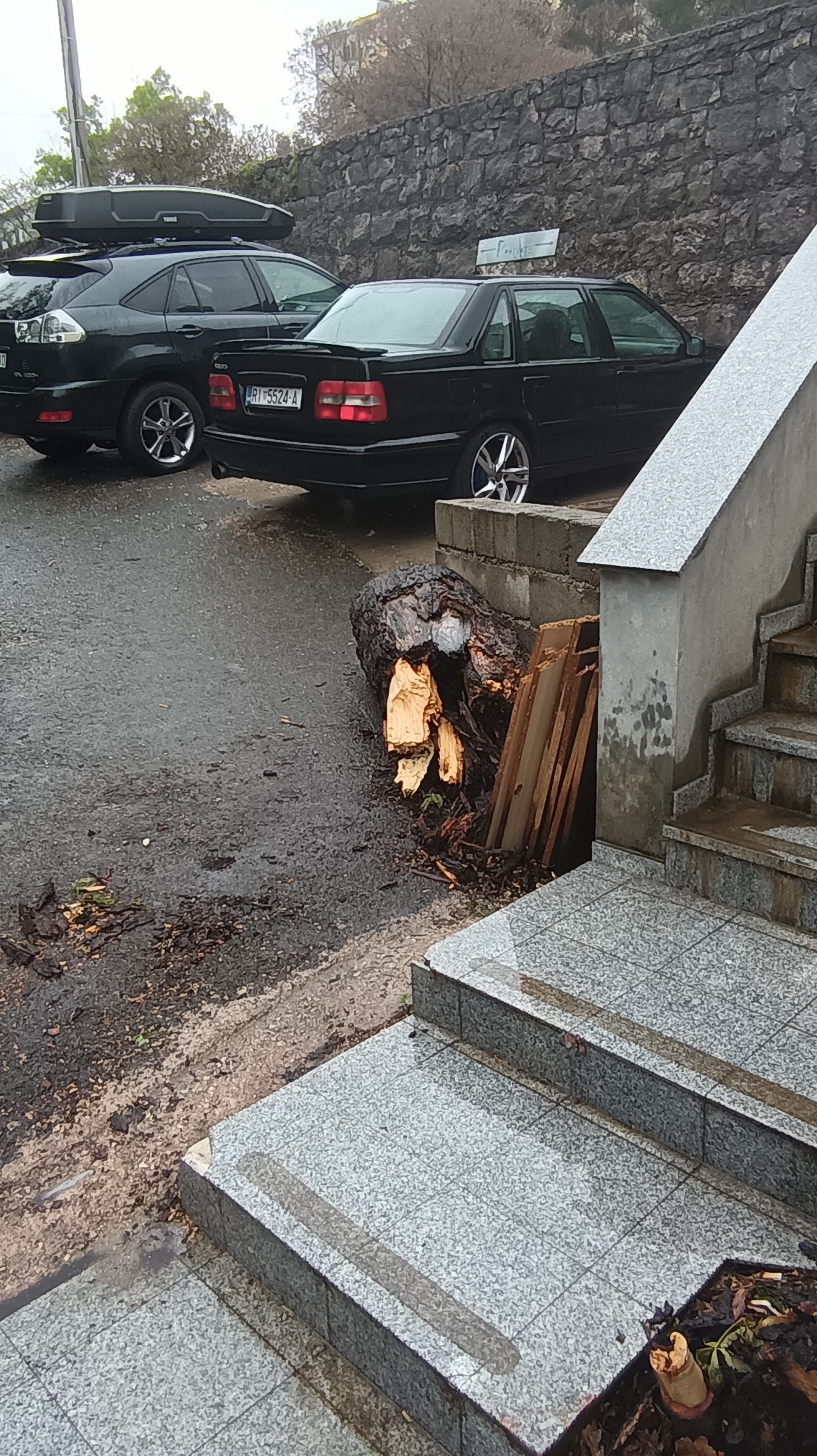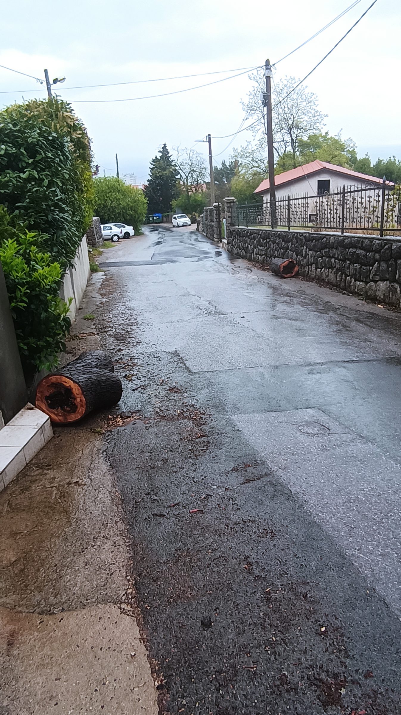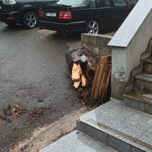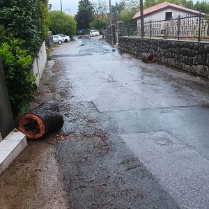 za vrijeme olujnog vjetra prije nekoliko dana ispred kućnog broja Avelina Turka 20 srušilo se stablo kestena. Pretpostavljamo da je netko iz grada ispilo drvo na komade, jer se nalazilo na prometnici i sprječavalo promet. Na prometnici i uz prometnicu nalaze ostaci stabla. Najveći problem su komadi debla koji se mogu svaki tren otkotrljati niz vrlo strmu ulicu i netko može jako nastradati. Niže niz ulicu nalazi se OŠ Zamet, a škola počinje drugi tjedan i bilo bi zaista dobro da netko makne ostatke stabla koji su bačeni i na privatan posjed preko puta navedenog kućnog broja. Također, preko ceste je visio i kabel i ne znam je li od telefona, interneta, struje… ja sam ga maknuo koliko sam moga da ne zapinju vozila za njega, no i taj kabel još uvijek ugrožava sigurnost.