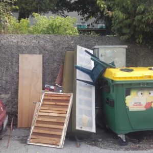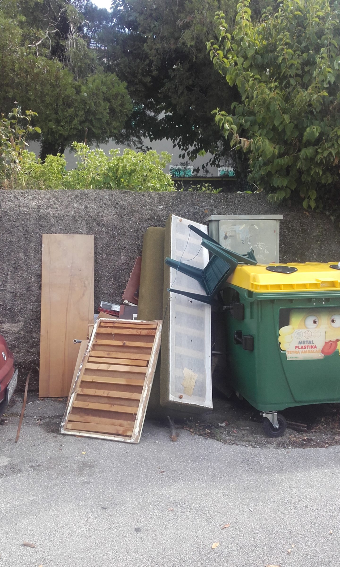 Želim naglasiti da ovo nije pritužba na rad nadležnih službi već molba za nekakvo postupanje. U ulici Marči (ispod zida pred kbr.11) netko od stanara ulice je neodgovorno ostavio krupni otpad kraj kontejnera za smeće. Otpad stoji već cca mjesec dana i ima tendenciju povećavanja. Molio bih da se putem Čistoće taj otpad nekako ukloni. Hvala