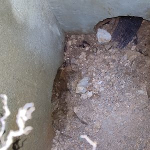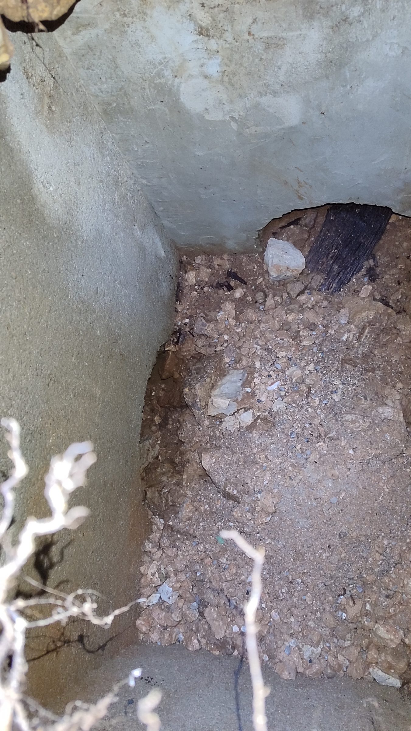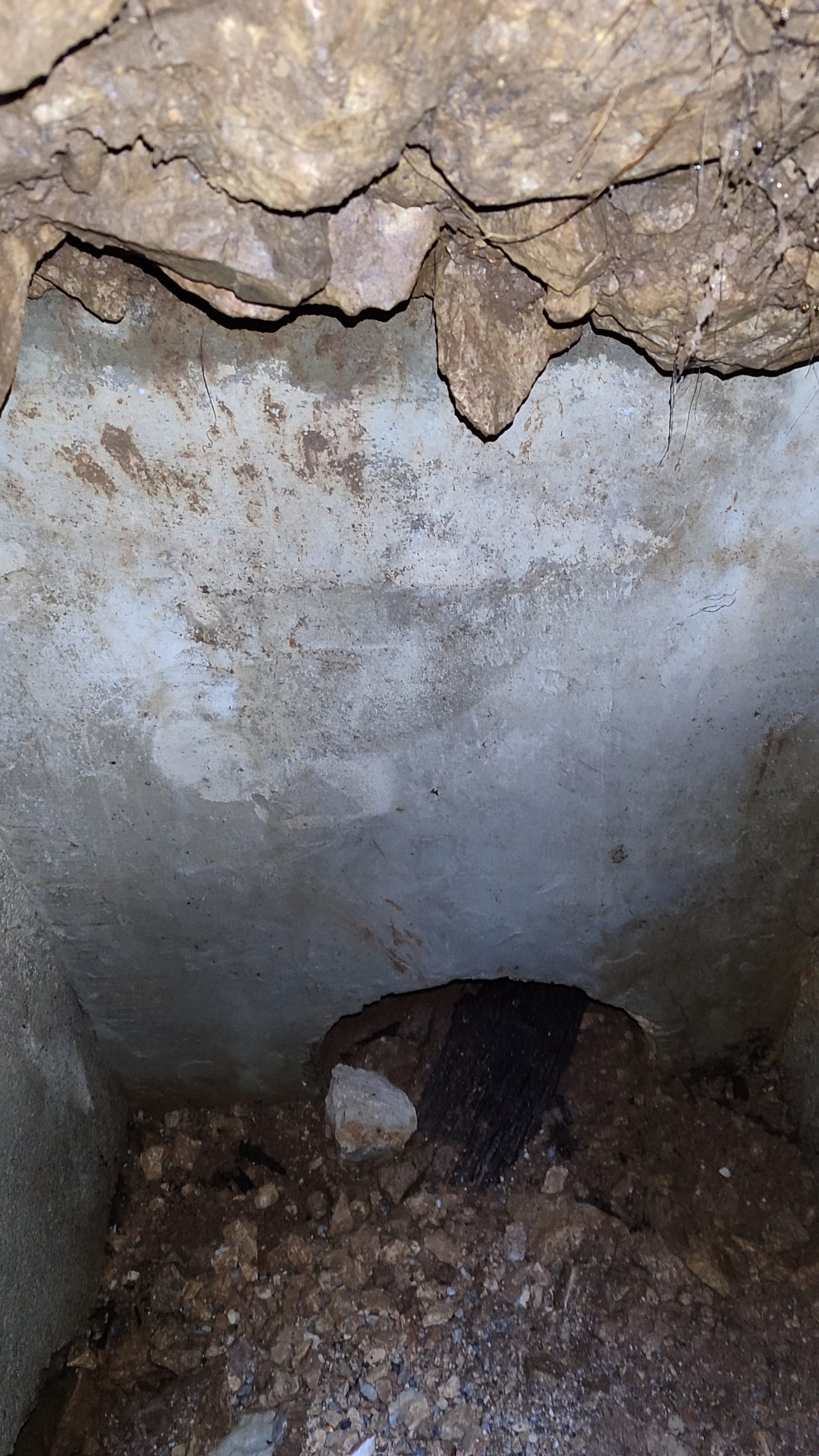 Zbog nečega se sada otvorila ta rupa, i vidi se da je to kanalizacijski priključak sa dvije spojne cijevi, koji je dugo vremena bio zatrpan i neprimjetan…