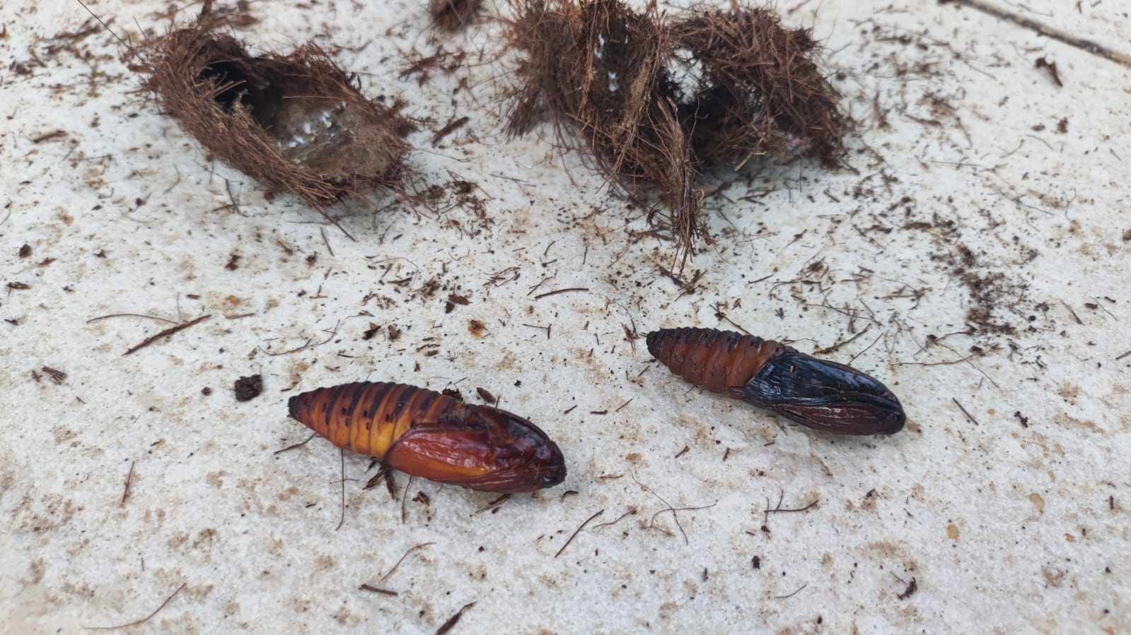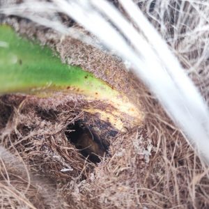 Svi smo svjedoci propadanja naših palmi u gradu i šire, a izgleda da ljudi (kao i relevantne državne službe) ne znaju niti su svjesni koliko je situacija ozbiljna. Koliko sam vlastitim istraživanjem ustanovio uzročnik je invazivna vrsta Palmin drvotoč (Paysandisia archon) čije je prisustvo u Europi utvrđeno još prije 10 godina. Na više lokacija u gradu, kao i kod sebe doma ustanovio sam prisustvo te vrste. Palmu uništava dok je u ranoj fazi gusjenice, hrani se i buši hodnike unutar palme. Kasnije ulazi u stadij kukuljice te je zaštićen kokonom nakon čega izlazi van kao leptir. Koliko sam primijetio, sve se odvija u samom vrhu palme u duljini od oko 1m. Glavni znakovi su prisustvo ‘slijepljene piljevine’ na vrhu te odbačene kožice kukuljice koje još vire iz palme ili su pale na tlo. Leptire često zamjećujem i u letu. Čitao sam da im i pogoduju blage zime, a mi nismo dugo imali neke oštre zime… Mora se nešto poduzeti ili ćemo ostati bez svih palmi u gradu i šire!