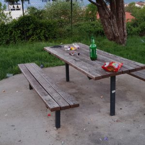 Naime, već je nekako uobičajeno postalo da se u kasnim večernjim satima u mraku parka okuplja mlađa grupa delikvenata. Nakon njihovog pijančevanja park je pun smeća. Nerijetko se razbijaju staklene boce po podu i obližnji zid preko puta ceste, pa je i sam cesta puna stakla što je pak opasnost za automobile.
