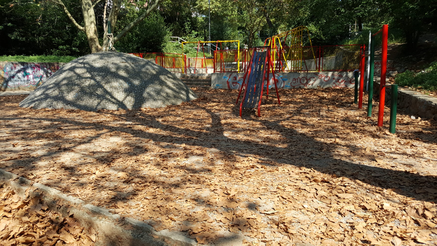 Igralište je bilo prekriveno isključivo lišćem koje stabla platana, zbog izuzetne suše i visokih temperatura, odbacuju ranije nego inače.