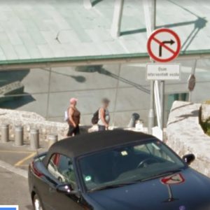 Sada je u hladu još parkirano 2 vozila kraj lijeve strane, bliže uredima klubova, već su na bijelom kamenu i mrlje od ulja te guma.