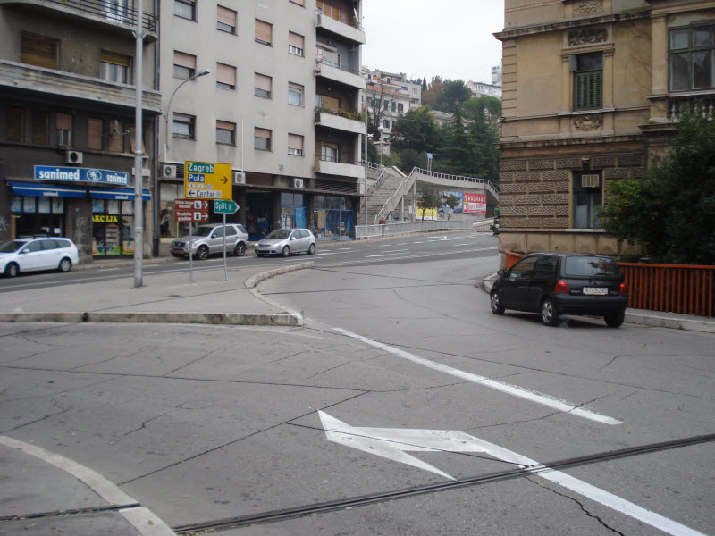 ovih zadnjih par dana kišnog vremena me podsjetilo na ovaj naš slavni zavoj na kojem su valjda svi Riječani bar jednom proklizali i hvatali automobil da izbjegnu sudar sa ogradom. Ovo zapravo nije tužibaba nego molba da se prije tog zavoja postavi prometni znak za skliski kolnik kako bi se upozorilo vozače koji se dosad nisu imali prilike družiti sa našim Istočnim izlazom. Mislim da se ne radi o velikom izdatku, a više sam puta doživio da se razne strane registracije zalijeću po ravnici pa onda na sreću prolaze tim zavojem.