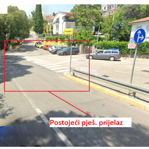 Obilježeni pješački prijelaz kod Bazena Kantrida i benzinske postaje Kantrida – sjever (INA) nalazi se na najopterećenijoj prometnici koja povezuje Grad Rijeku sa Opatijom, Matuljima i zapadnim prigradskim područjem (Slika 1). Iako je ograničenje brzine kod spomenutog pješačkog prijelaza 50 km/h, na navedenoj dionici i u području pješačkog prijelaza vozi se brže od dopuštenog, a česte su i prometne nesreće (sudari, naleti vozila itd.).