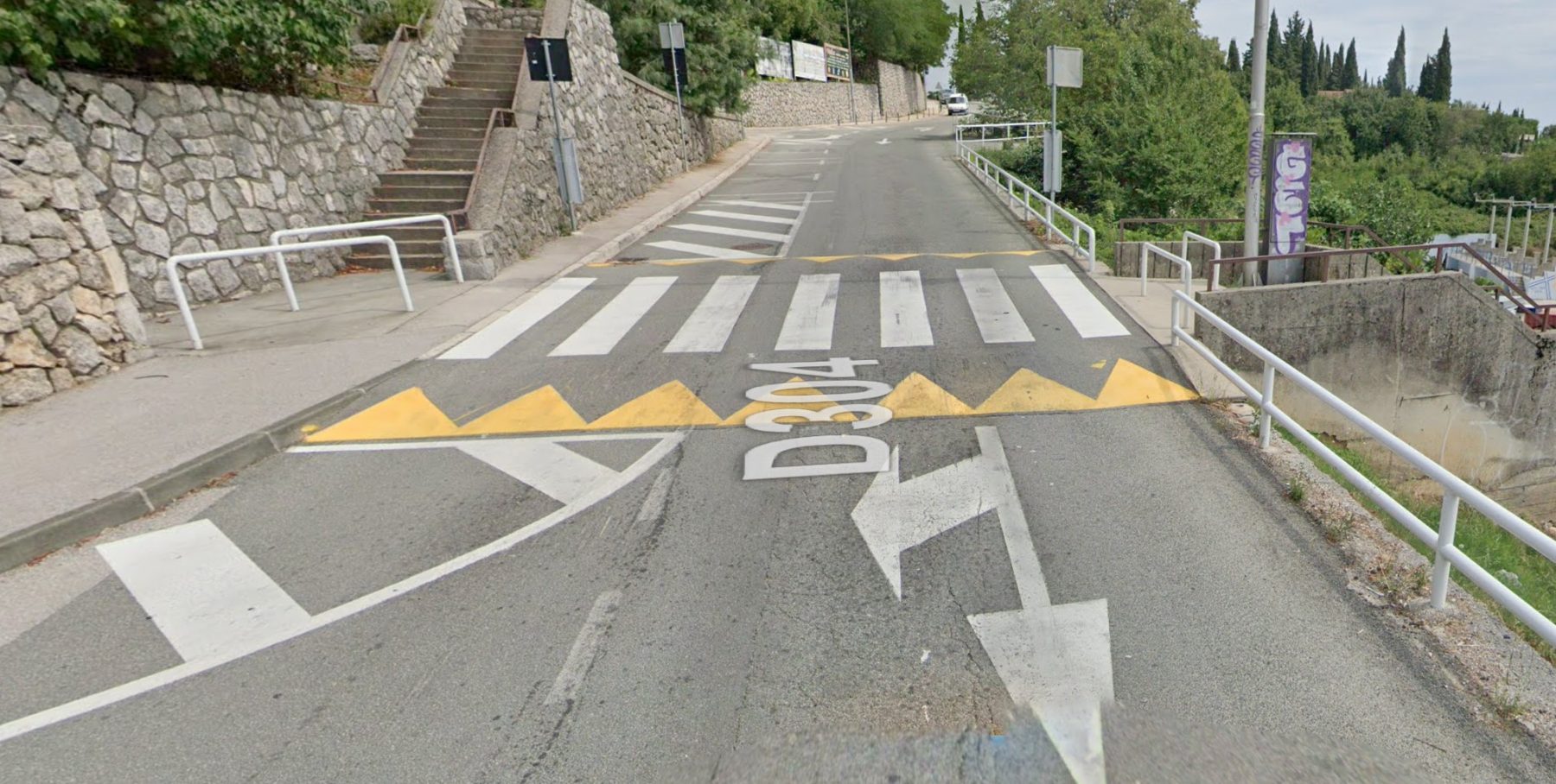 U prilogu vam šaljem slike iz Ulice Mihačeva draga, kao i prometno riješenje kod škole u Kastvu gdje vozači moraju smanjiti brzinu na 20-30 km/h kako bi mogli proći.
