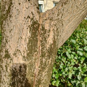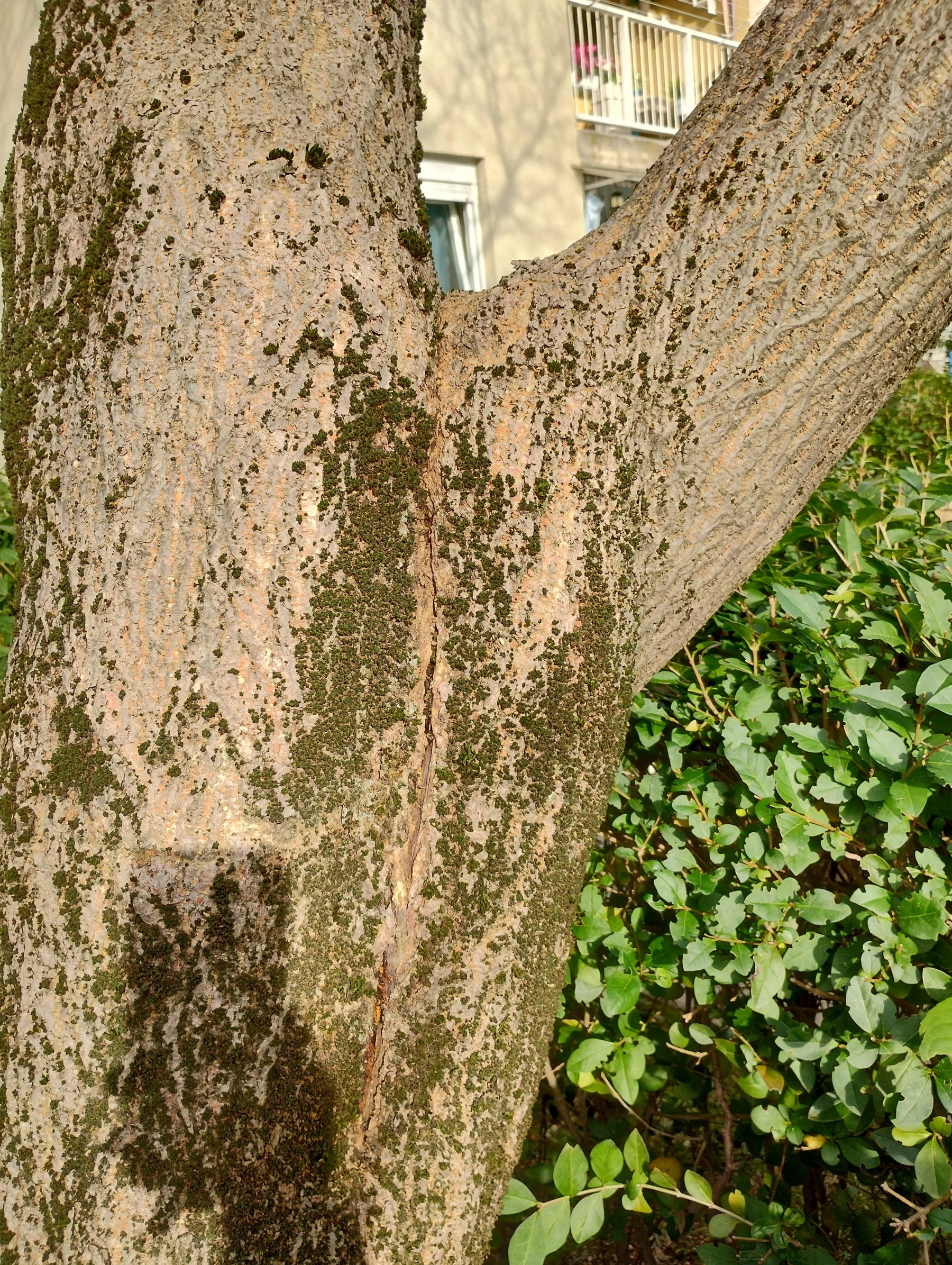 prilažem fotografije na kojima se vidi puknuće na grani stabla. Tijekom višemjesečnog praćenja vidi se kako se pukotina povećava te stvara potencijalnu opasnost od potpunog puknuća i pada na prolaznike i parkirana vozila, pogotovo tijekom nevremena.