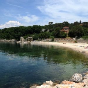 Primjećujemo da je nemoguće spustiti se na kat niže, prema moru jer ono maleno dizalo ne radi, potrebna je stručna osoba. Mali spasioc nema blage o tome. No, ako se i spustimo niže jedino što možemo jest sunčati se jer ne postoji (možda ja nisam vidjela iako sumnjam) nekakva nizbrdica sa ogradom ili bilo što kako bi invaldina osoba ušla u more.