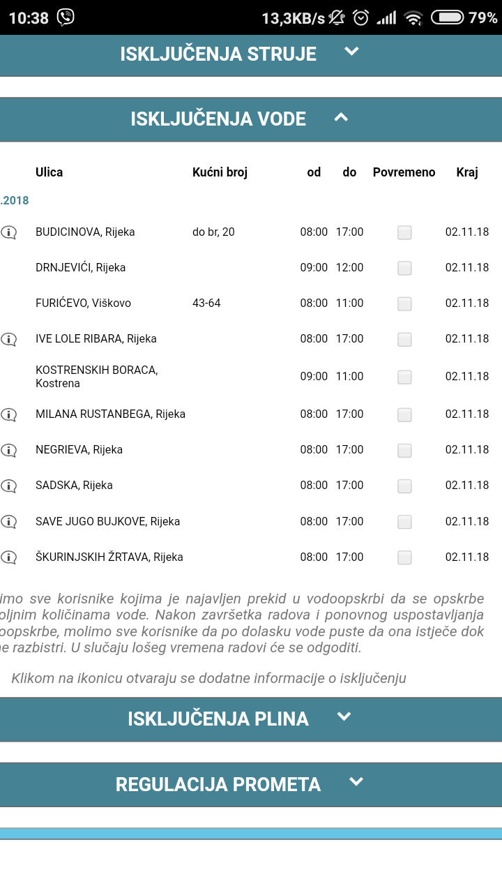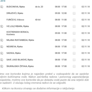 Dana 2.11.2018 prekinuta je vodoopskrba na prostoru N.N. Škurinje.