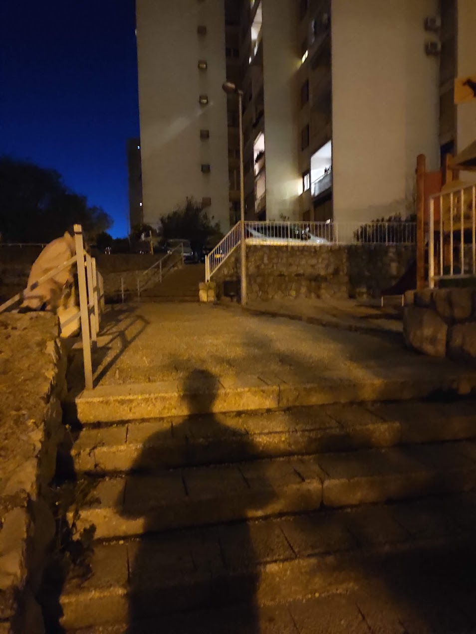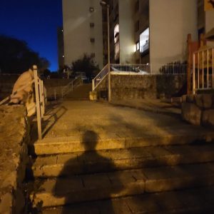 Pa je put odnosno stepenice u potpunom mraku i građani sa mobitelima moraju svijetliti stepenice.