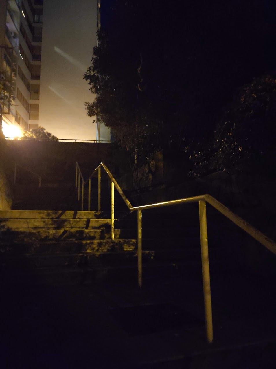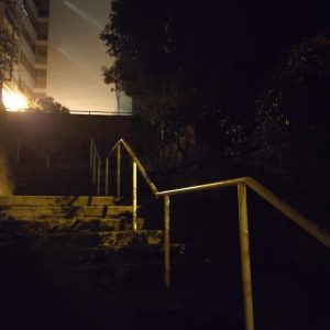 Na stepenicama ispod Rastočina 6 koje povezuju gornji i donji dio ulice, stup javne rasvjete i lampa je kompletno u grmlju, a grmlje koje je doseglo 3-4m kompletno radi sjenu lampi.