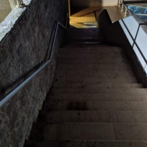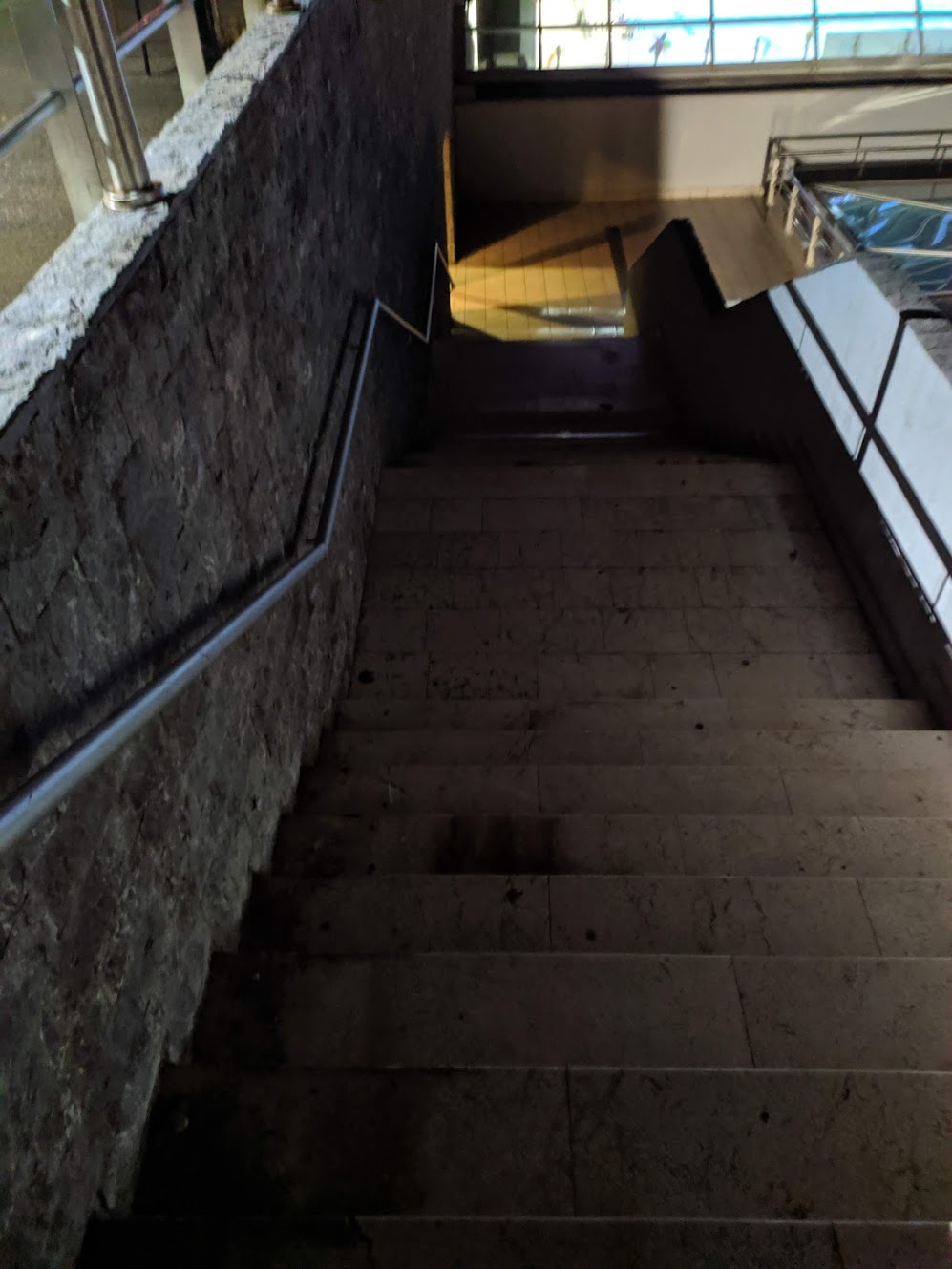 Sve stepenice oko kompleksa su već smeđe, stepenice sa prve fotografije imaju vodu koja izlazi iz fuga, stvaraju se čak i sige, to je sanirano valjda 10 puta u 4 godine pa se stvar i dalje ponavlja. Kada se kompleks otvorio stepenice su se čistile i miniwashem a sada iz garaže čak i korov raste.