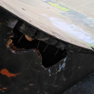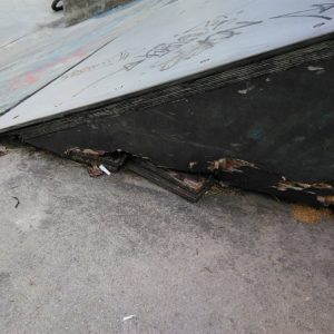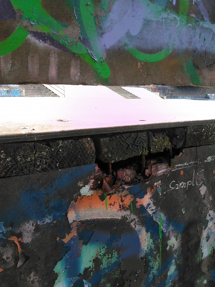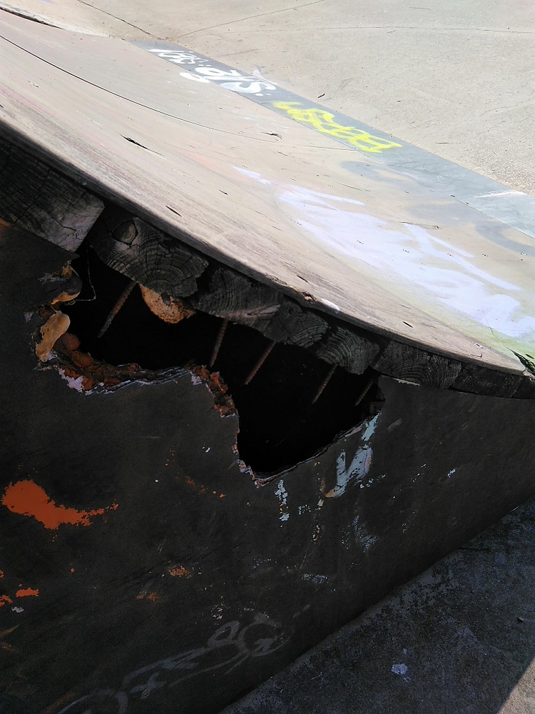 Kako je vidljivo na slikama koje prilažem svi elementi su više nego dotrajali. Koliko je meni poznato stari su najmanje 11 godina i nisu se niti jednom obnavljali ili popravljali. U takvom stanju predstavljaju direktnu opasnost kako za vozače tako i za djecu koja se po elementima penju i igraju, zbog raspucalog drva, oštrih limova koji vire te vijaka koji svakodnevno ispadaju. Da ne spominjem koliko se guma probuši ili padova i ozljeda prouzroči upravo naletom na takve dijelove. Nažalost, kako sam na početku spomenuo ovo je jedino takvo mjesto u široj okolici tako da bez obzira na stanje, korisnika/vozača ima dosta budući da jednostavno nemaju drugog izbora, osim gradskih trgova i sličnih alternativnih mjesta na koje su vozači prisiljeni sve više ići.
