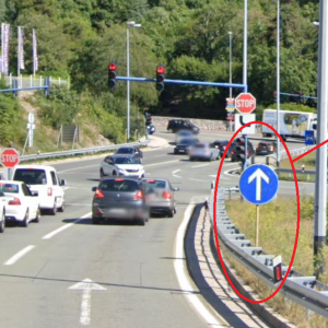 U prilogu je fotografija problematičnog prometnog znaka.