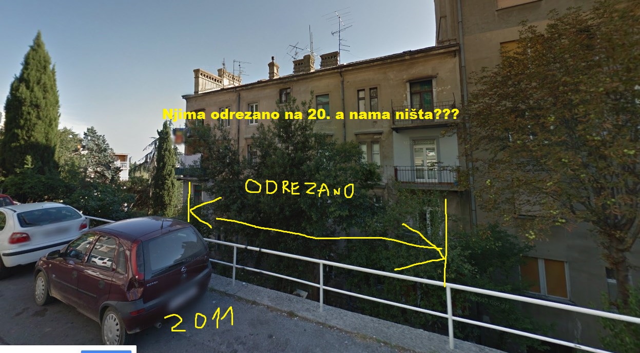 Pogledajte samo slike s Googla, prije 7 godina, stabla su bila još manja pa su ogromna a ispred kbr 20. ste odrezali a ovdje niste.