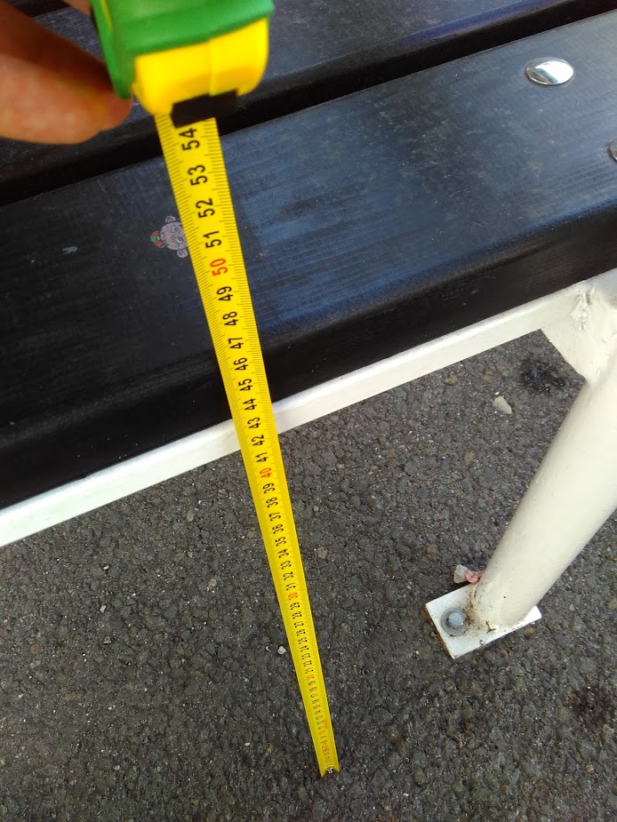 “trenutačno nalazi na visini od 45 cm”-> klupica je na iznimno niskih 39.5cm od poda. To nije 45cm, ni približno, na lijevoj strani prema mjerenju je 39.8cm. I dalje puno manje od laži od 45cm.