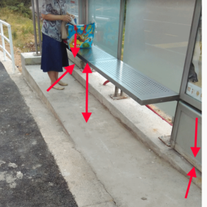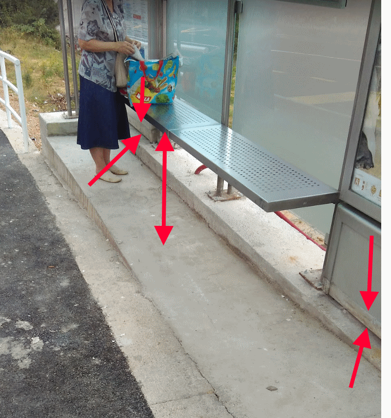 Možete li reći kolika je visina sjedalice od poda na dijelu gdje su noge do visine stolice na stajalištima Osječka-Crkva A, B, Škurinje Rotor, Osječka BILLA? Jer je na svima 5-10cm niže stolica od ovdje i noge su na podu a na ovoj stanici svima, pa i starijim osobama koji moraju sjesti su noge u zraku kada sjednu i teško se ustati i sjesti.