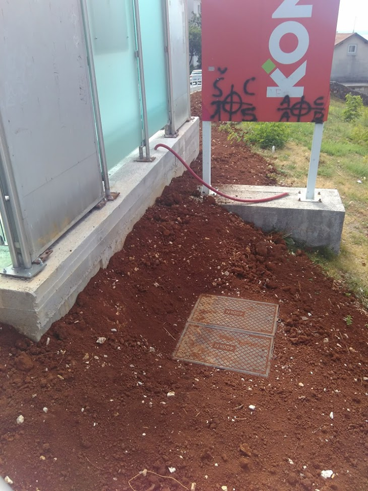 Na zadnjoj fotografiji jasno vidite još 5-10cm koliko je prije ova ista vraćena nadstrešnica bila u zemlji,, popločana i koliko bi još trebala biti površina ispod stolice na koju dođu stopala kada se sjedne trebala biti izdignuta.