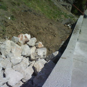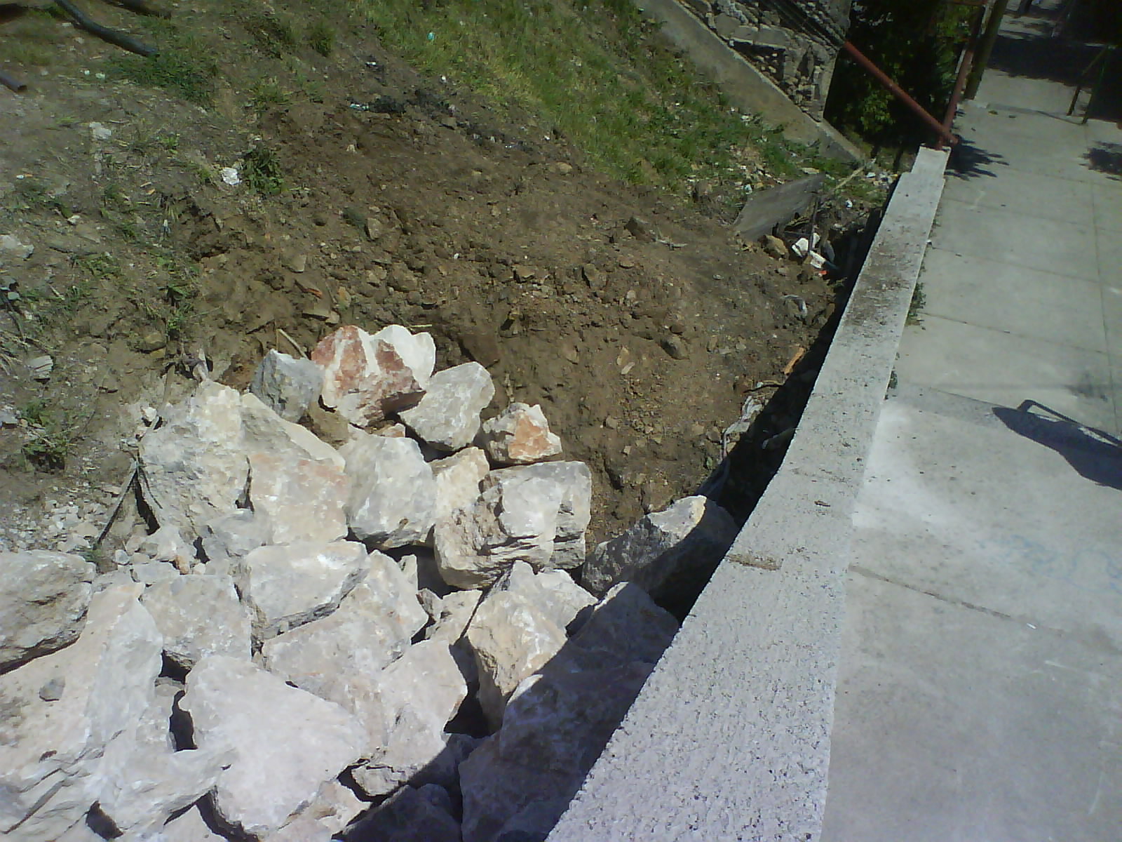 No danas sam se iznenadio načinu rješavanja problema, naime umjesto da se sanira ta cijev, možda doda kakav kanalizacijski otvor po stepnicama za kišu koja pada ili slično. Istresene su ogromne gromade stijena po toj tankoj, već puknutoj plastičnoj cijevi. Osobno sam mogao čuti kako cijev puca i kroz rupe između kamenja je bilo jasno vidljivo da će cijev sada još više propuštati.