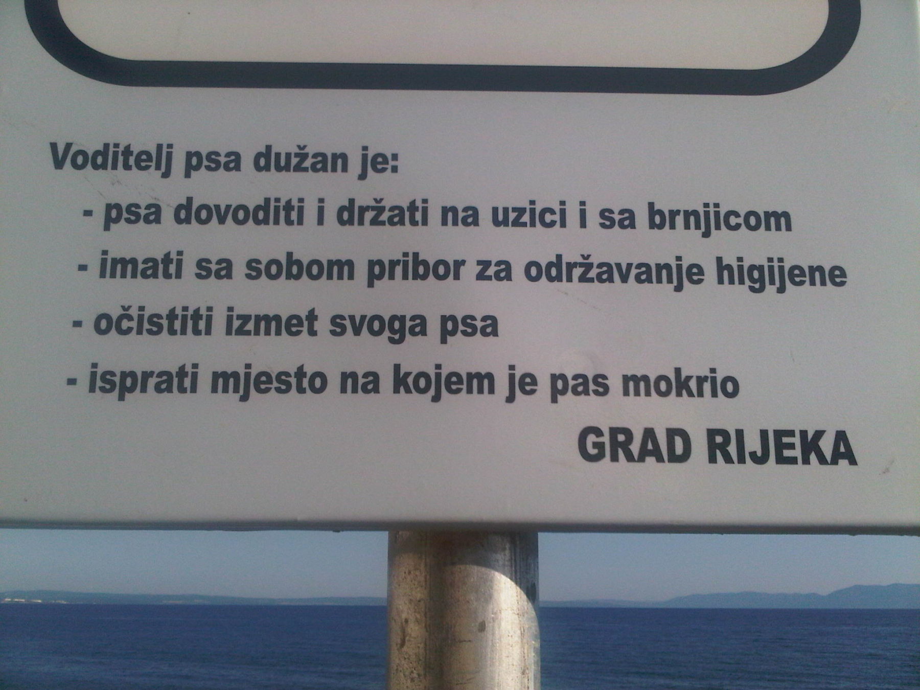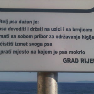 Molila bih da mi Grad odgovori (odnosno onaj pametnjaković koji je napisao prvu stavku na tabli koja označava plažu za pse) kako se zamislilo da se pas kupa i pliva sa uzicom i brnjicom?! Čija je to idiotska ideja i šta je tom nekom bilo u glavi?! Naravno da će svaki normalni vlasnik psa počistiti i isprati mjesto na plaži gdje je pas obavio nuždu, ali UZICA I BRNJICA na plaži i za plivanje?! I vodu moraju piti s brnjicom ili im je za to smijemo na par sekundi skinuti?! Pa čemu onda uopće plaža za pse, ako je psi ne smiju normalno koristiti?!