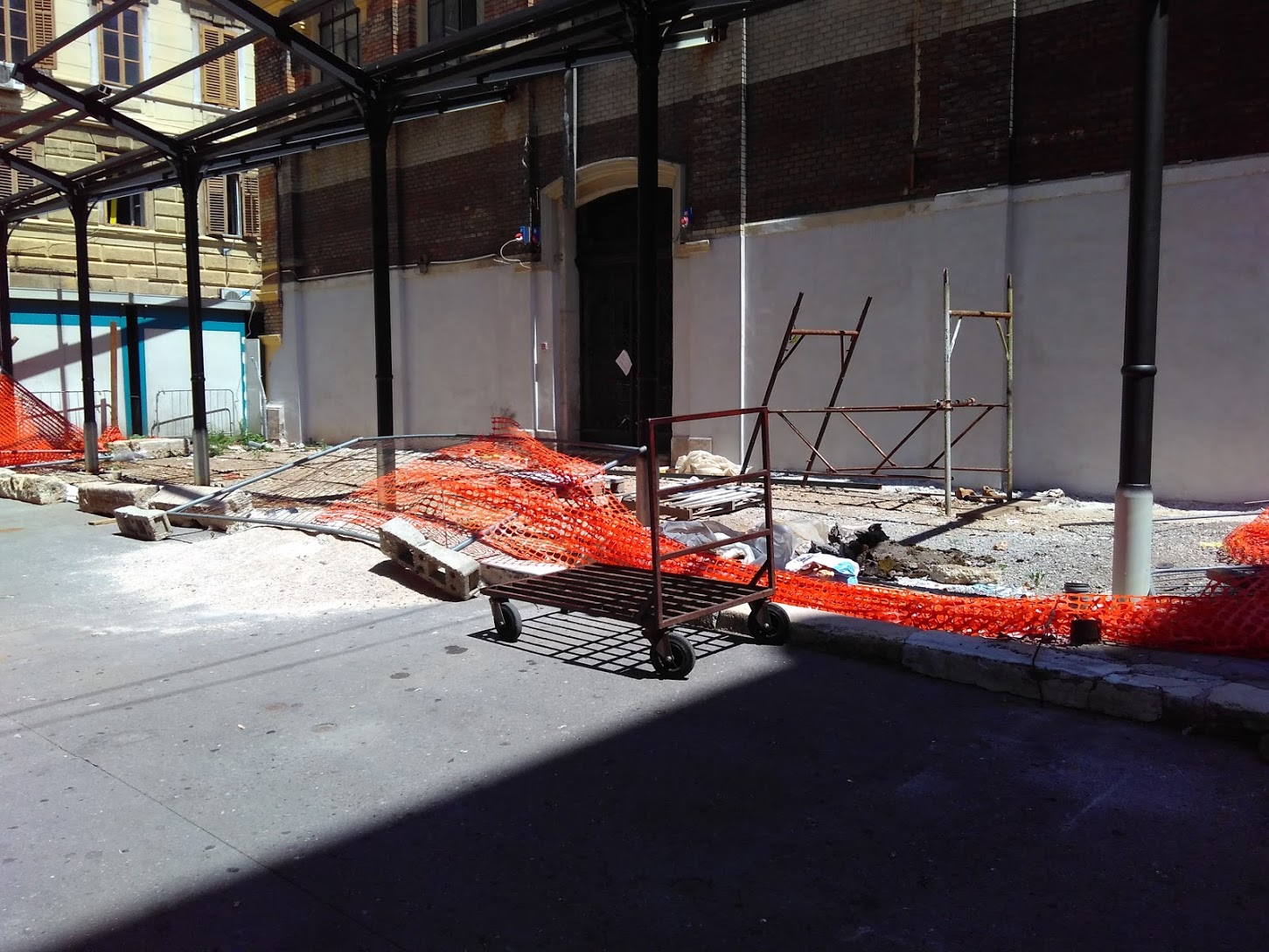 Tu je i uređenje jedne strane zgrade tržnice gdje već 3 mjeseca nema radnika na terenu, ograda oko radova porušena a to je slika i prilika svih javnih radova u gradu gdje grad angažira sumnjivu tvrtku.