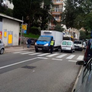 “Ono što meni a i ostalim stanarima smeta jest što se vozila parkiraju uz sam pješački i preglednost na prijelazu je nikakva sve dok ne zakoračiš na kolnik. Više puta smo Mjesnom odboru i Rijeka prometu predlagali da postave nekoliko stupića uz pješački uz napomenu da može doći do nesreće no oni to nisu uvrstili u prioritete”, kaže naš čitatelj Darko Klobučar, koji je snimio fotografije nesreće na kojima se, kaže, vidi da je na spornoj strani ceste, neposredno uz pješački prijelaz, bio parkiran visoki furgon, koji je priječio pogled pješakinji na cestu.