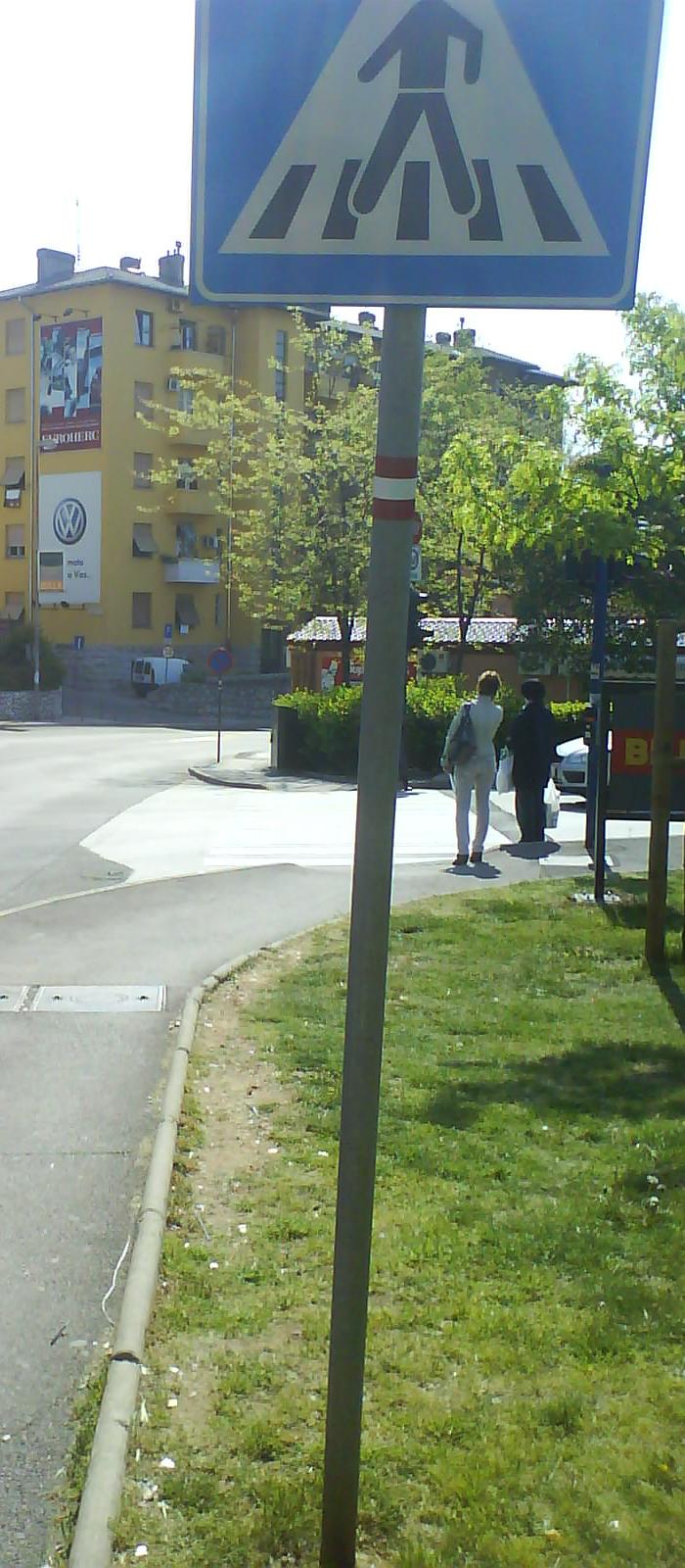 Zanimljivo, svi znakovi za pješački ili su sakriveni, okrenuti, nagnuti… kao na slikama. No, danas su odgovorni postavili znak pješački i stop ispred Bille, no nisu ispravili ostale.