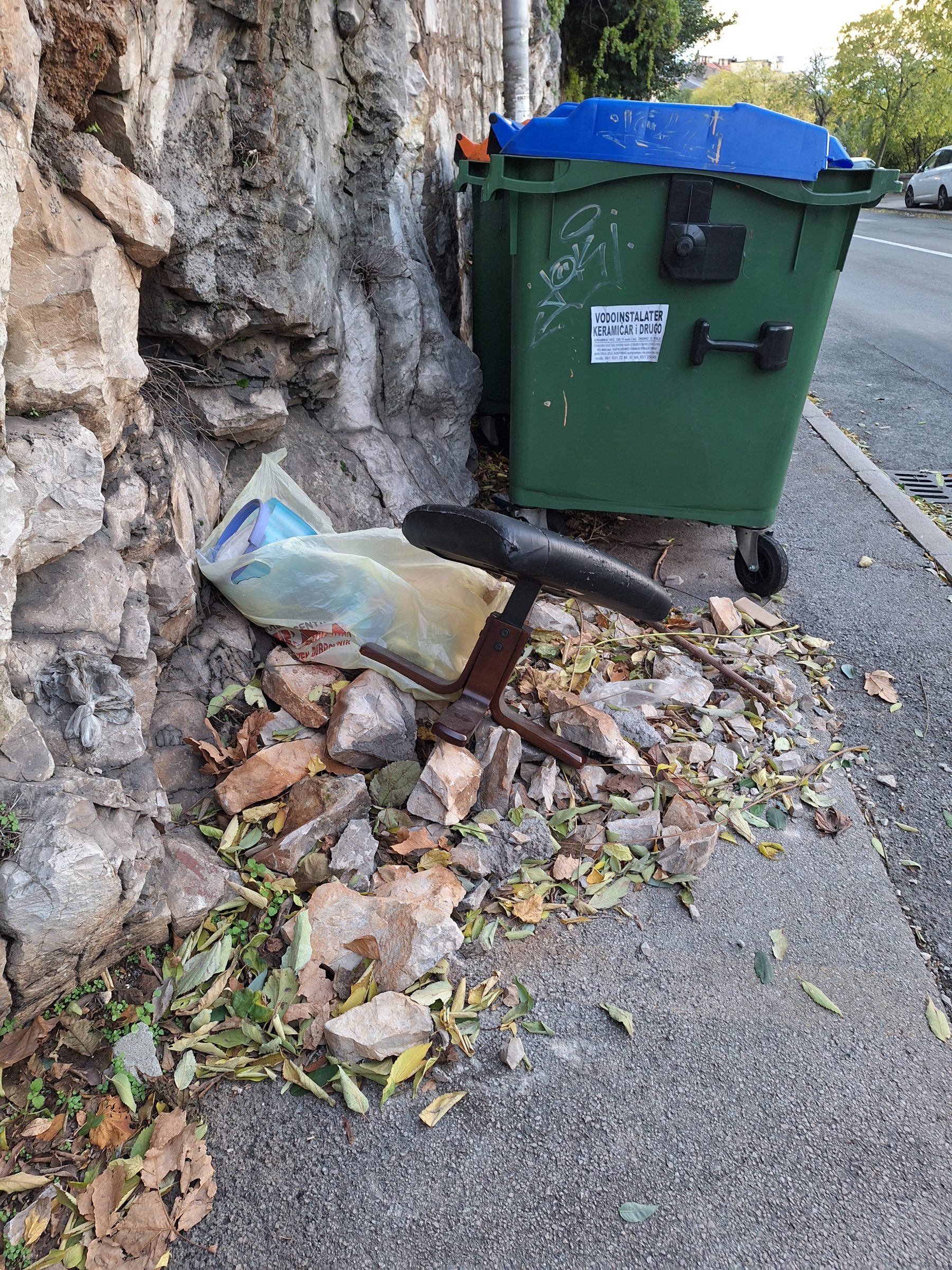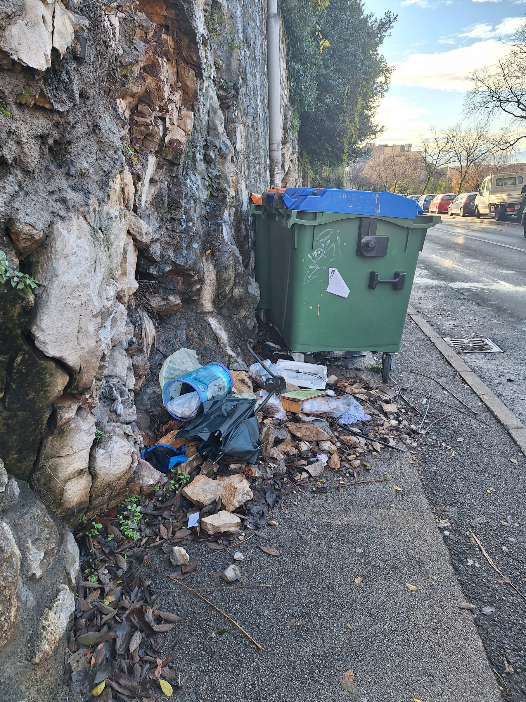 ljubazno vas molim da uputite nadležne službe da orežu grmlje i poprave rasvjetu u ulici Prvog maja. Naime, grmlje (stablo?) koje se savija preko zida iz ulice Giordana Bruna, u potpunosti prekriva stupove javne rasvjete, dok jedan uopće ne radi. U ulici, a pogotovo na tom dijelu je navečer mračno i potrebno je paliti nekakvu osobnu rasvjetu s mobitela i slično budući da se ništa ne vidi, a i zbog enormne količine nepropisno parkiranih vozila na nogostupu. Osim toga, tijekom jedne od jačih kiša, mislim da je to bilo nekad krajem listopada/početkom studenoga, urušio se ogroman kamen sa zida te tako, sada razmrvljeno kamenje, stoji na pločniku pored kontejnera. Naši nevjerojatni građani na to kamenje (ne u kontejner pored) bacaju smeće. Smeće je pokupljeno od nekoga no kamenje i dalje leži, evo već barem 2 mjeseca. Možda, osim čišćenja površine, ne bi bilo loše pogledati zašto se urušio ogroman kamen sa zida, makar da se spriječi njegovo buduće urušavanje na nečiju glavu ili nepropisno parkirano vozilo. Ulicom redovito prolaze djelatnici Čistoće, metući ju ručno, ne međutim kamenje se ne uklanja, što moram priznati ne razumijem. Prilažem fotografije još iz studenoga. Hvala unaprijed!